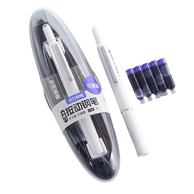 Der praktische Füller ohne lästige Kappe! Einfach Knopf drücken - schon kommt die feine 0,38mm Spitze raus. Super für unterwegs: Nie mehr verlorene Kappen! Transparenter Schaft zeigt dir immer, wie viel Tinte noch da ist. Inklusive 5 Patronen (3 schwarz, 2 blau) - reicht ewig! Besonders angenehm für Schüler und Studenten: Leichtes Dreieck-Design ermüdet nicht, auch nach Stunden nicht. Tinte läuft nicht aus - sicher in der Tasche. Wählbare Farben: Schwarz, Grün, Hellblau, Dunkelblau. Modernes Design meets klassisches Schreibgefühl!