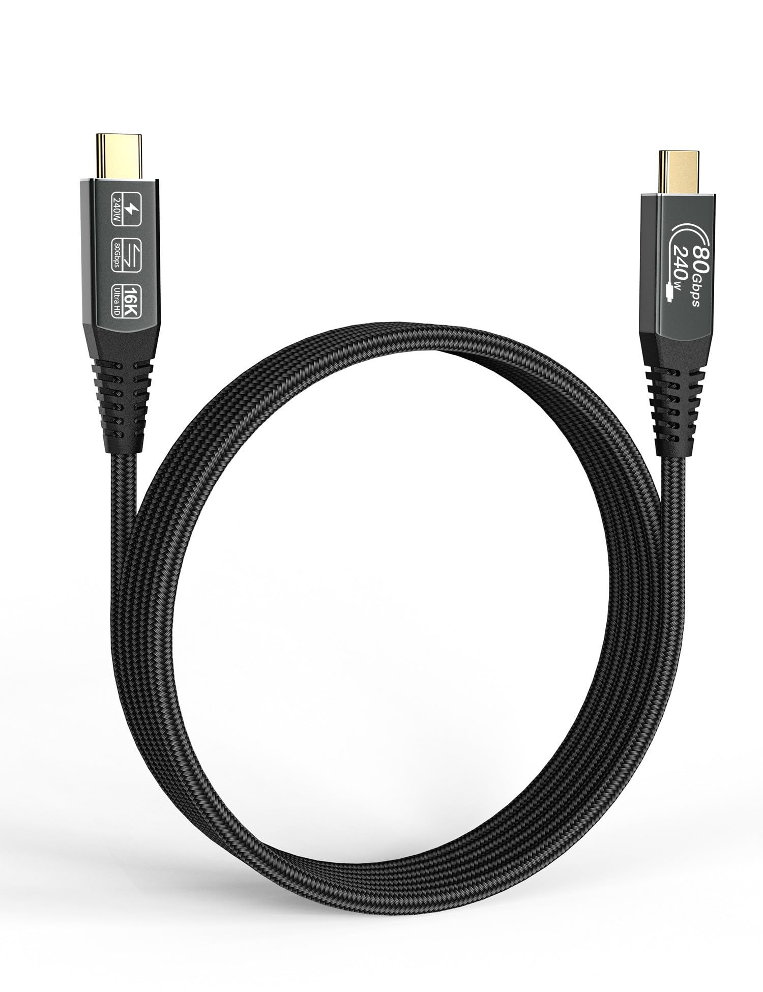 Alter, was für ein Kabel! Dieses 0,3 Meter kurze USB-C Kabel von TOPINCN ist der absolute Overkill für deine Technik. Mit Thunderbolt 5 Unterstützung lädt es mit satten 240 Watt - da läuft selbst dein Gaming-Laptop in Rekordzeit voll.\n\nDatenübertragung? 80 Gbps - doppelt so schnell wie USB4! Übertrag große Dateien, 16K-Videos oder Gaming-Daten im Turbomodus. Unterstützt 16K@60Hz oder 8K@60Hz in zwei Kanälen - perfekt für professionelles Video-Editing oder Gaming.\n\nLadeleistung: 240W (PD3.1)\nDatenrate: 80 Gbps\nVideo: 16K/8K Unterstützung\nLänge: 0,3 Meter\nGeflochtenes Nylon\n\nDas geflochtene Nylon hält 15.000 Biegungen aus, die Aluminium-Stecker sind verstärkt. Rückwärtskompatibel mit Thunderbolt 4/3 und USB4/3/2. Egal ob Laptop, Tablet oder Smartphone - dieses Kabel macht alles mit. Nie wieder Kompatibilitätsprobleme oder leere Akkus. Einfach das eine Kabel für alle deine Geräte!