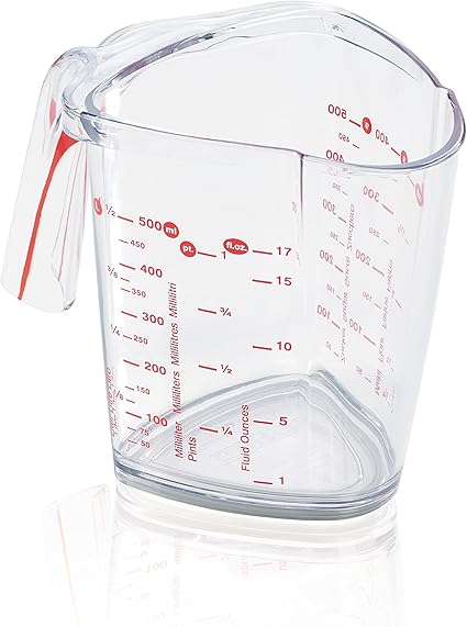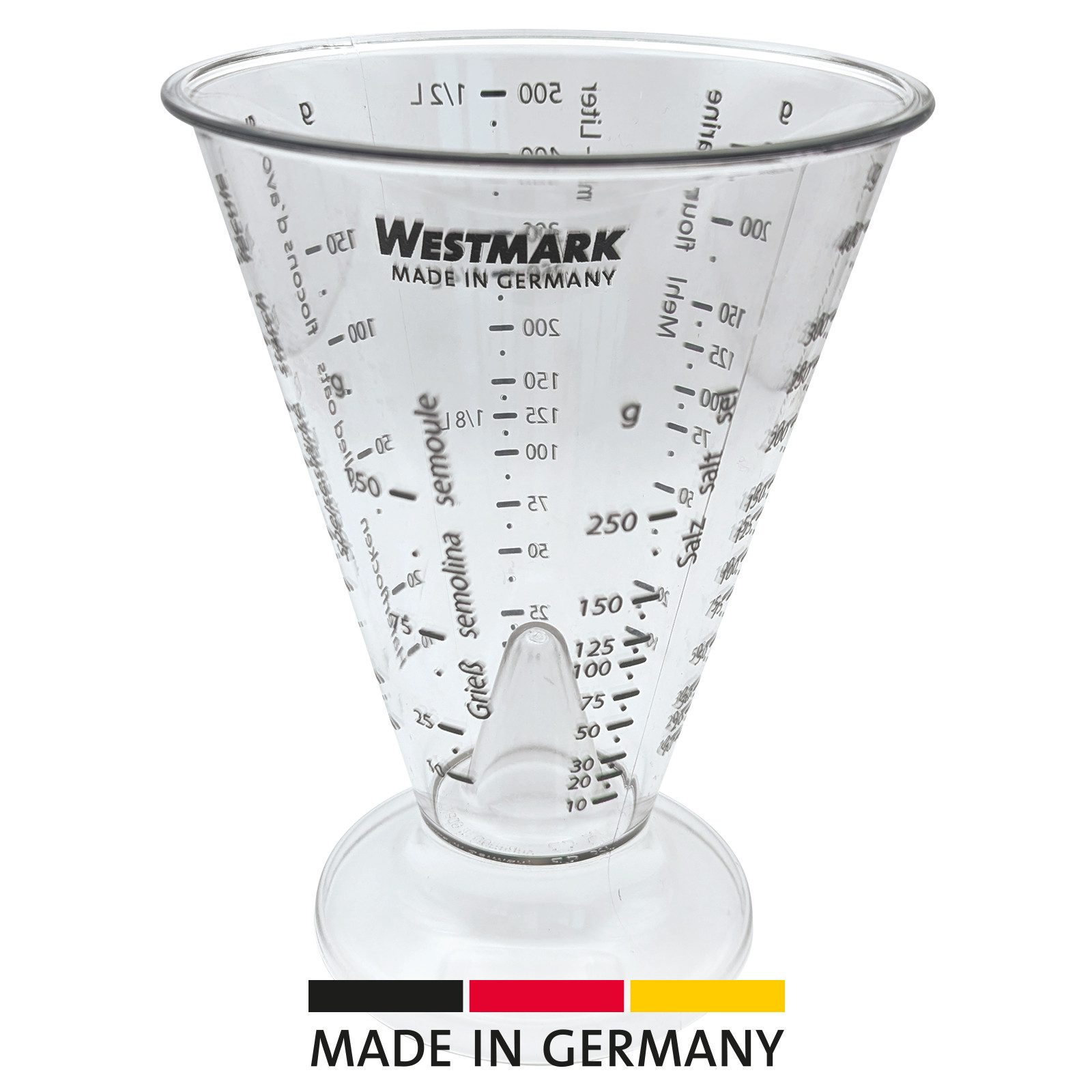 In der Küche unverzichtbar: Dieser praktische Meßbecher! Mit 0,5l Fassung und konischer Form - da siehst du genau die Mengen ablesen. Der abnehmbare Standfuß ist genial, der Becher steht super stabil. 9 verschiedene Skalen drauf: Salz, Mehl, Zucker, Gries, Rosinen, Kakao, Reis, Haferflocken und Liter/ccm - damit misst du wirklich alles. Aus klarem PS-Kunststoff, sodass du die Füllstände perfekt siehst. Mit 11cm Durchmesser und 18cm Höhe passt er in jede Schublade. Ob fürs Backen, Kochen oder Mixen - damit geht's einfach viel schneller. Einfach reinigen (spülmaschinengeeignet) und immer griffbereit halten. So ein praktisches Teil sollte wirklich in jeder Küche stehen!