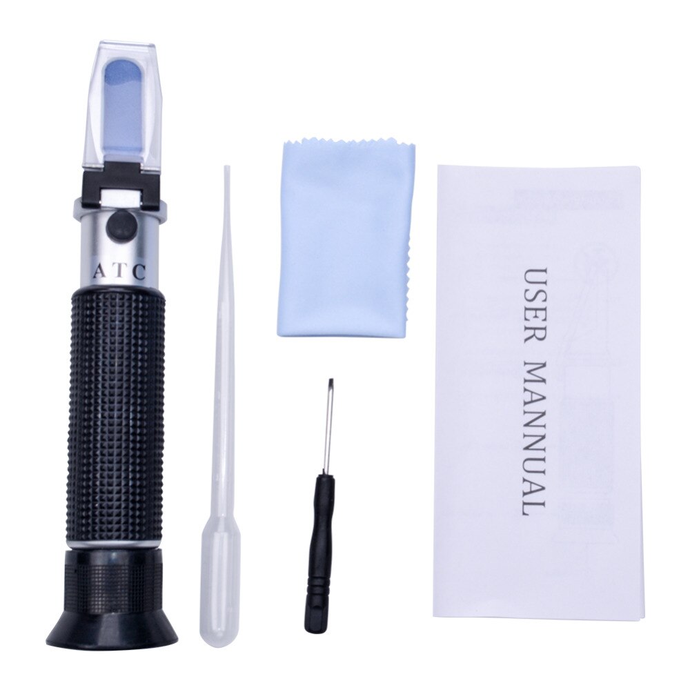 Für alle Heimbrauer, Winzer und Spirituosen-Fans! Dieses professionelle Alkohol-Refraktometer misst präzise den Alkoholgehalt von 0-80% in deinen Getränken. Mit automatischer Temperaturkompensation von 0-30°C für genaue Ergebnisse. Einfache Bedienung: Ein paar Tropfen der Flüssigkeit auf das Prisma geben, Deckel schließen und durch das Okular schauen - schon siehst du den Alkoholgehalt auf der Skala. Komplett-Set inklusive Schraubendreher, Tropfer, Wischtuch und Aufbewahrungskoffer. Aus Aluminium gefertigt, ca. 205mm lang und 240g schwer. Wichtige Hinweise: Nicht willkürlich auseinanderbauen, vor Stößen schützen und nur mit weichem Tuch reinigen. Nicht ins Wasser tauchen! Für präzise Messungen in der Getränkeherstellung, Qualitätskontrolle oder einfach zum Experimentieren zu Hause.