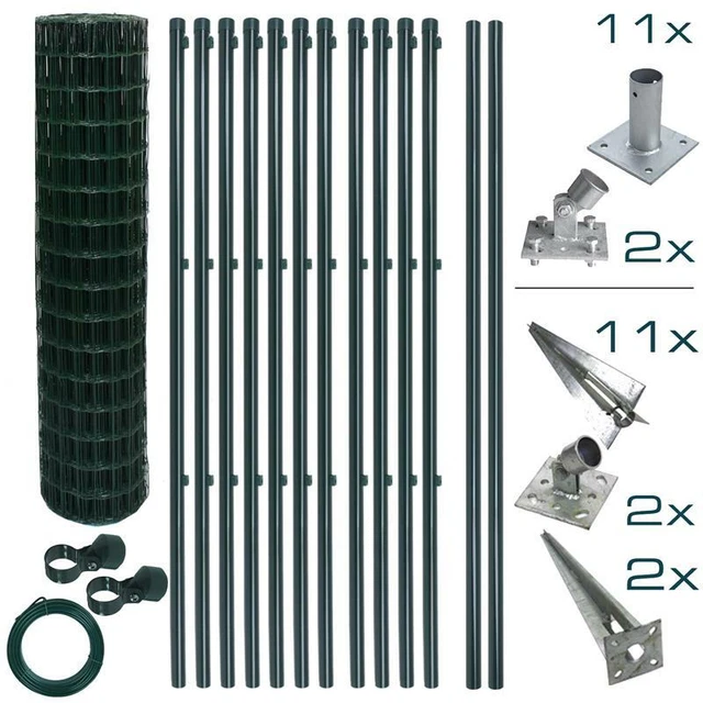Gartenbesitzer, dieses Zaunset macht dein Grundstück perfekt! Komplettset mit allem was du brauchst: 10m Schweißgitterzaun (0,8m hoch), 7 Zaunpfosten, 2 Streben, Einschlaghülsen und Bindedraht. Verzinkt und PVC-beschichtet in grün - absolut korrosionsgeschützt und langlebig. Maschenweite 7,5x5cm, perfekt als Sichtschutz, für Beeteinfassungen oder Tiergehege. Einfache Montage, stabiler Halt. Mach deinen Garten sicher und schön mit diesem qualitativ hochwertigen Zaunsystem!
