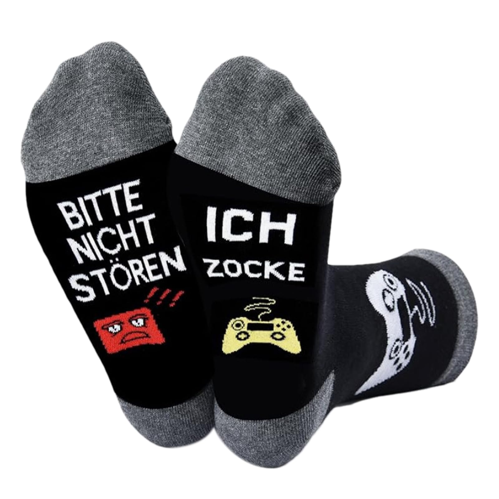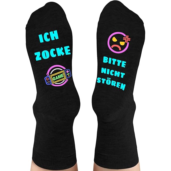 Alter, diese Socken sind ja der Hammer! Stell dir vor: Du zockst gerade dein Lieblingsspiel und deine Füße tragen den perfekten Gamer-Spruch: 'Bitte nicht stören - ich zocke!' 😎
