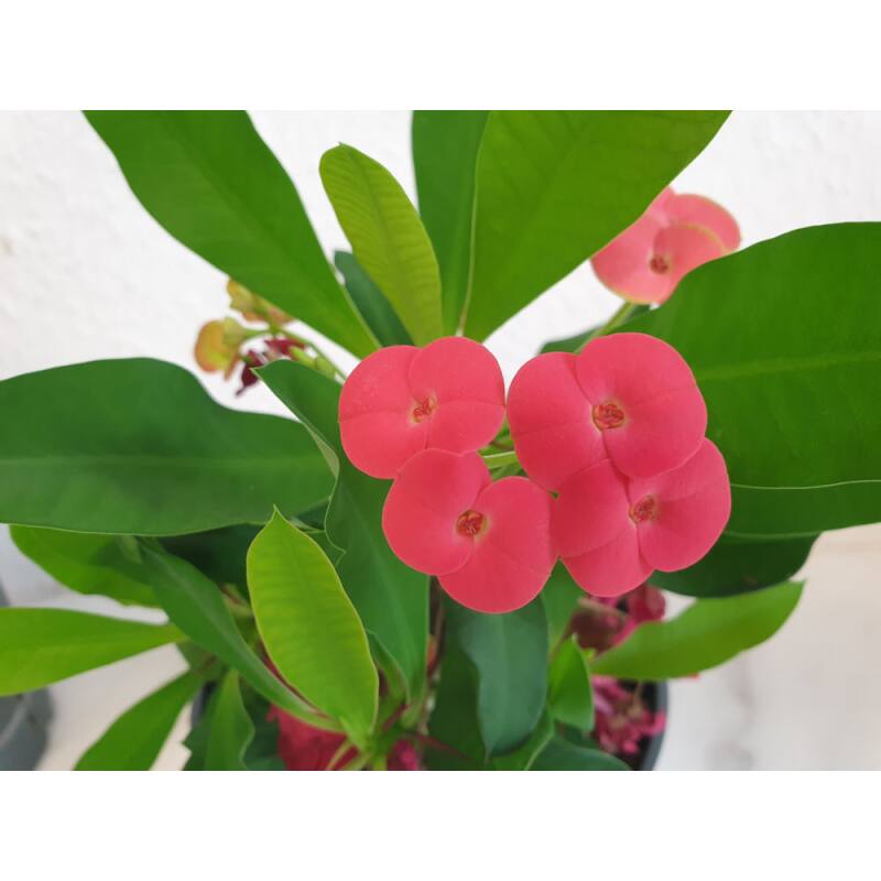 Bring mediterranes Flair in dein Zuhause! Der Christusdorn Euphorbia Milii ist nicht nur eine wunderschöne Sukkulente, sondern auch steinalt in der Pflege. Mit ihren zarten rosa Blüten und den charakteristischen Dornen ist sie ein echter Hingucker.
