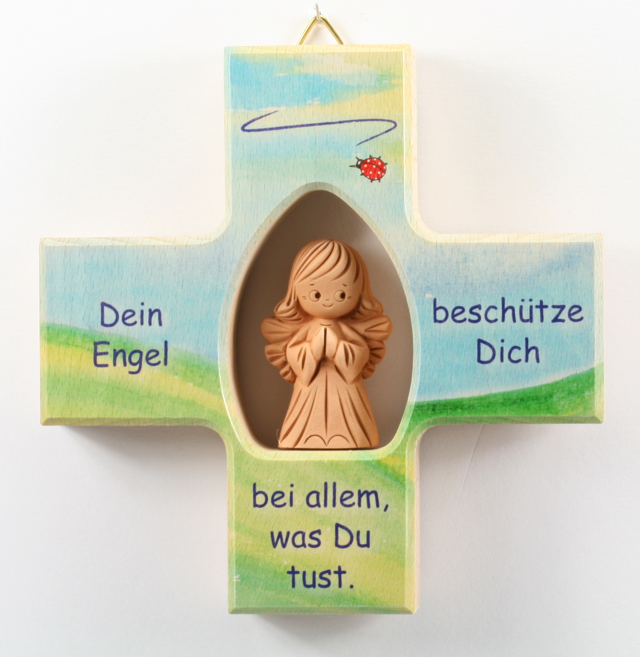 Oh, wie süß ist denn dieses Kinderkreuz? Mit dem Schutzengel-Gebet 'Engel sei mein Begleiter' - einfach herzerwärmend! In blau mit naturfarbenem Holz - besonders für Jungen geeignet. 20x12x1cm groß - perfekt fürs Kinderzimmer. Hergestellt in Deutschland - echte Handwerksqualität! Mit praktischer Bohrung auf der Rückseite - einfach an die Wand zu hängen. Perfekt als Taufgeschenk, zur Kommunion oder einfach so. Über 70 Jahre Erfahrung von Fritz Cox - da weiß man was man hat. Das bunte Design passt super in jedes Kinderzimmer. Ein Geschenk, das wirklich von Herzen kommt und ein Leben lang Freude bereitet. Einfach bestellen und strahlende Kinderaugen garantieren!