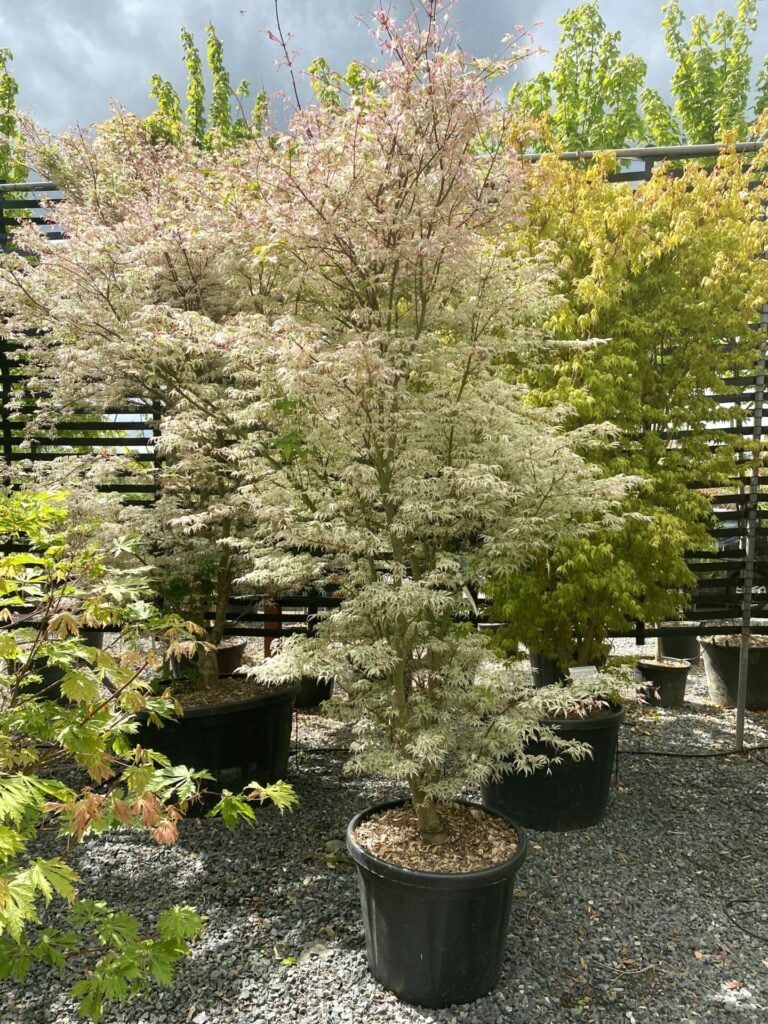 Ein echter Blickfang für deinen Garten! Der Japanische Ahorn 'Ukigumo' bezaubert mit seinen grünen Blättern und weißen bis rosa Sprenkeln. Jedes Blatt ist ein Unikat - mal ganz grün, mal fast komplett weiß.