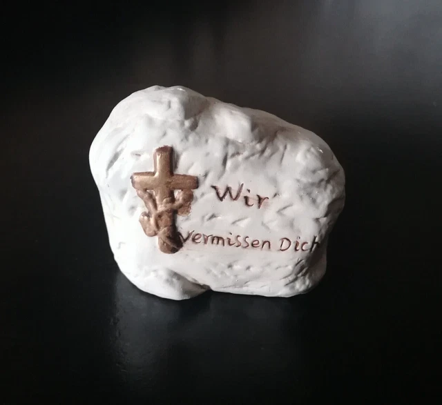 Ein stilles Zeichen der Liebe und Verbundenheit. Dieser Gedenkstein mit der Aufschrift 'Wir vermissen Dich' ist eine würdevolle Art, an geliebte Menschen zu erinnern. Mit dezenter Rosenverzierung und in mattem Grau passt er perfekt auf jedes Grab oder persönliche Gedenkplätze im Garten. Aus robustem, wetterfestem Polyresin gefertigt - hält Regen, Sonne und Frost problemlos stand. Mit 11,5x8x3,5 cm ideal für Urnengräber und kleine Grabstellen. Vom kleinen Logbuch-Verlag aus Regensburg mit viel Herz ausgesucht - blitzschneller Versport inklusive! Ein bleibendes Andenken das Trost spendet und zeigt: Du wirst nicht vergessen.