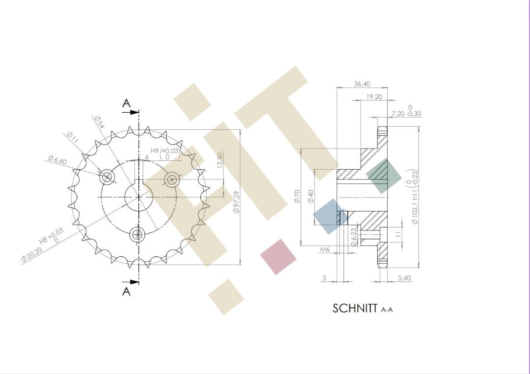 Brauchst du ein neues Kettenrad für deine Maschine? Dieses Simplex Kettenrad nach DIN 8187 ist genau das Richtige! Mit 30 Zähnen und einer 25mm Bohrung in H7 Passung - das ist Präzision pur. Die Zähne sind gefräst und induktiv gehärtet auf 50 HRC, also richtig robust und langlebig. Die Nut ist nach DIN 6885/1 standardisiert und auf die Zahnspitze ausgerichtet. Praktisch: Es hat zwei Gewindebohrungen für Stellschrauben - eine auf der Nut ausgerichtet, eine um 90° versetzt. Aus hochwertigem Stahl gefertigt, hält dieses Kettenrad auch bei harten Einsätzen was aus. Perfekt für Antriebssysteme wo es auf Zuverlässigkeit ankommt. Einfach montieren und deine Maschine läuft wieder wie geschmiert! Qualität die man sieht und spürt.