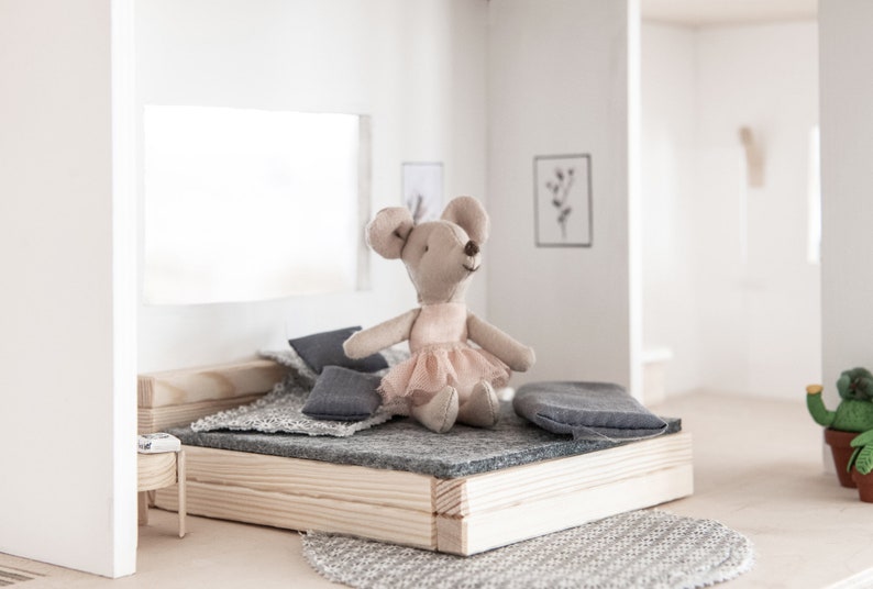 Oh, wie niedlich ist dieses Puppenhaus-Bett denn! Im Maßstab 1:12 für Standard-Puppenhäuser. Aus Holz mit süßem Blumen-Stoffbezug - sieht total romantisch aus. Maße 15,5x8x12,3cm - perfekt für deine Puppen-Wohnung. Super verarbeitet mit liebevollen Details. Macht jedes Puppenzimmer gleich viel gemütlicher. Aber Achtung: Nicht für kleine Kinder unter 3 Jahren, wegen verschluckbarer Kleinteile. Ein Traum für alle Puppenhaus-Fans!