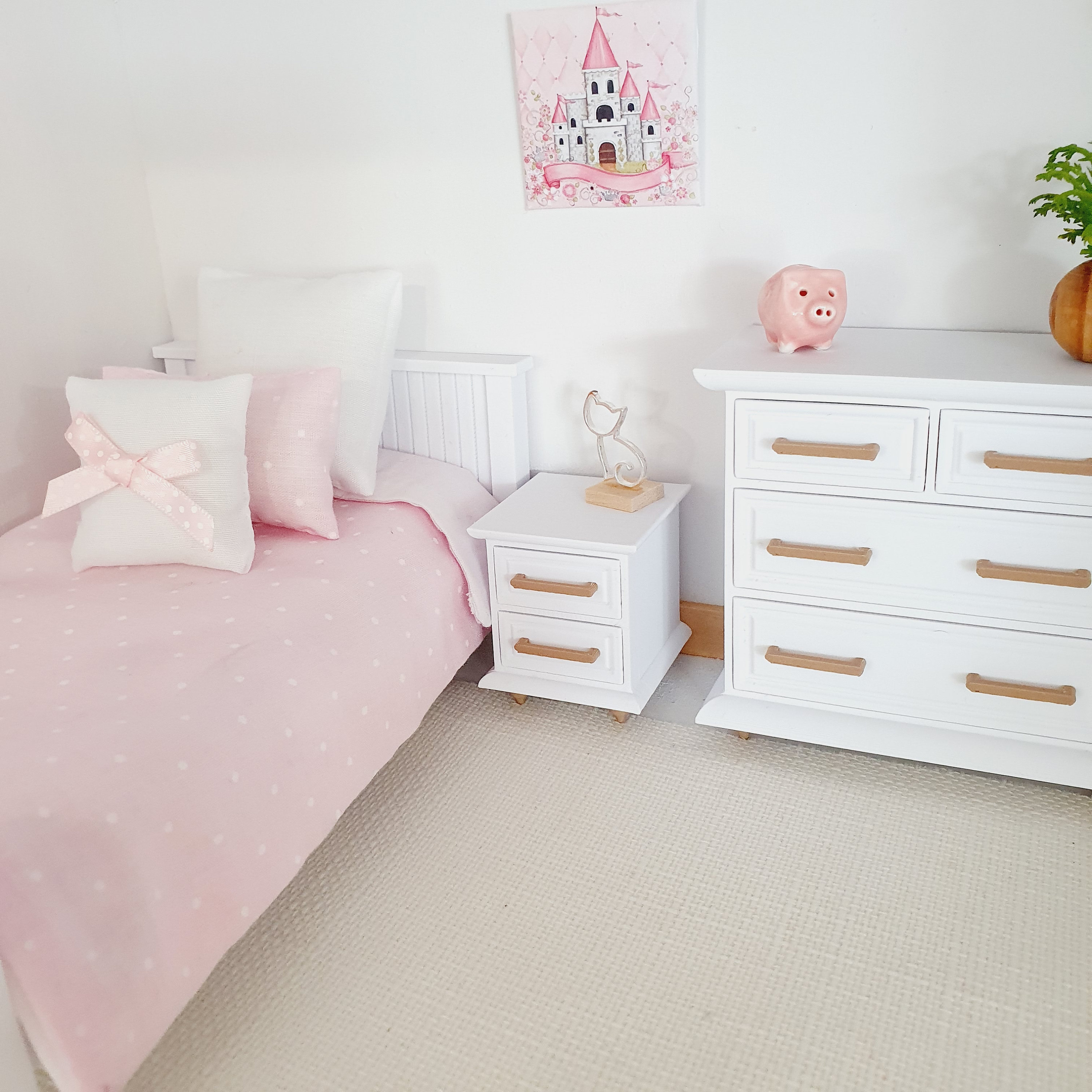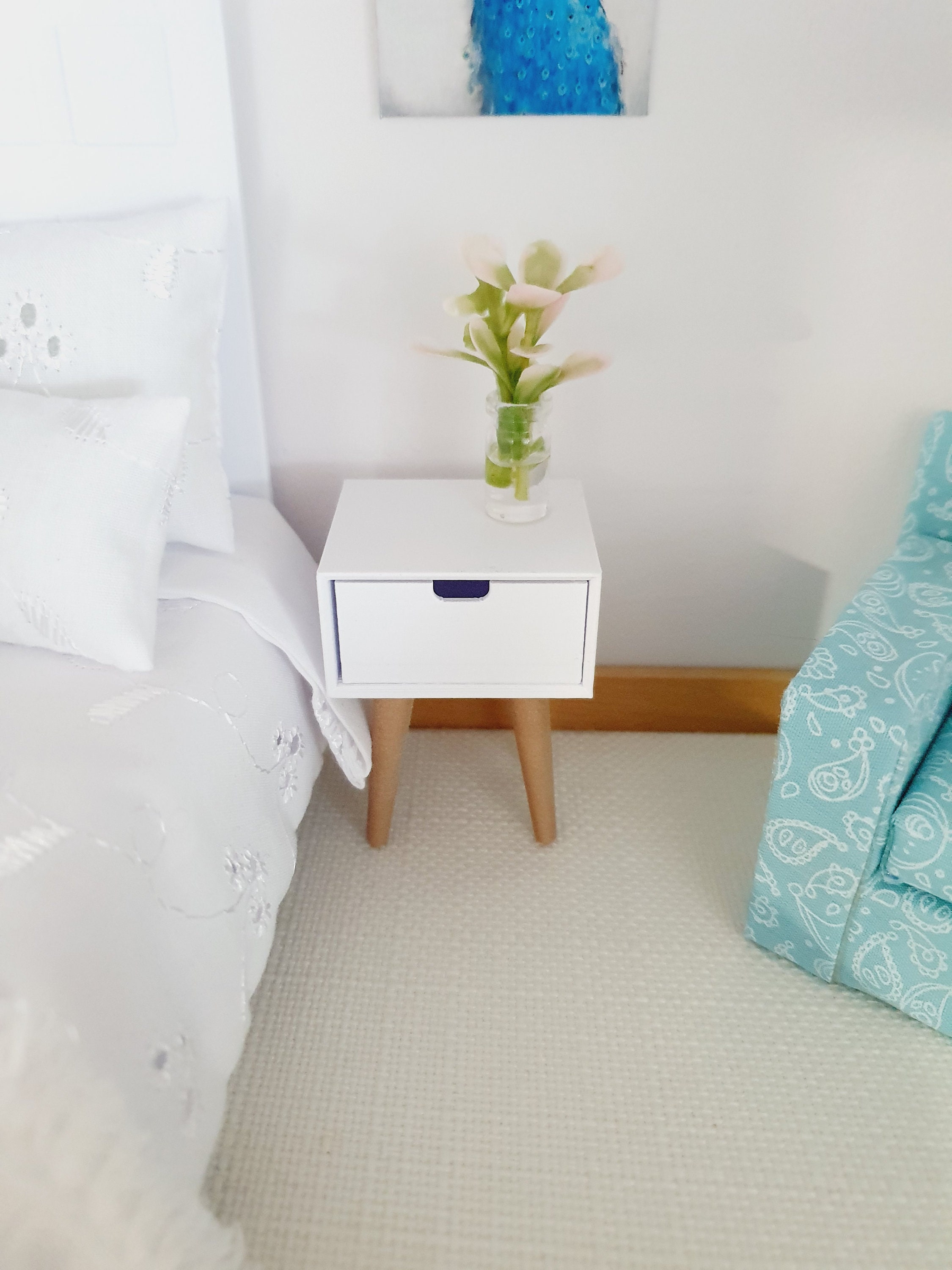 Dieser Miniatur-Nachttisch ist einfach nur niedlich für dein Puppenhaus! Im Maßstab 1:12 - perfekt für alle Standard-Puppenhäuser. Aus Holz und mit funktionaler Schublade - das ist schon richtig professionell! Die gebogenen Beine geben dem ganzen einen eleganten Touch. Nur 6x3,8x7cm klein - aber voller Details! Unlackiert - du kannst ihn nach Belieben anmalen und individualisieren. Perfekt für Miniatur-Sammler, Bastler oder um die Kreativität der Kinder zu fördern. Ob fürs Puppenschlafzimmer oder als Deko-Stück - dieser Nachttisch macht immer was her! Einfach aufstellen und dein Puppenhaus wird gleich viel gemütlicher!