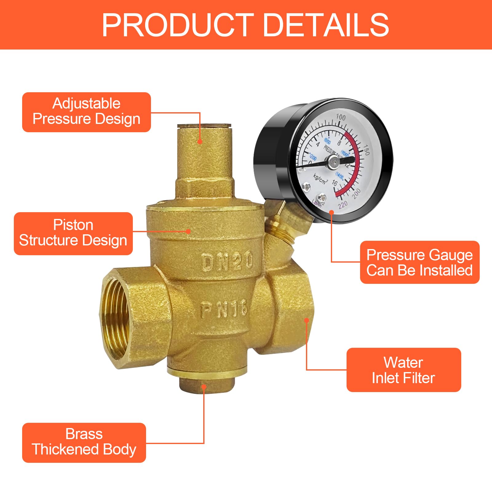 Handwerker und Hausbesitzer, dieser Messing-Druckminderer sorgt für konstanten Wasserdruck! Mit 1/2 Zoll (DN20) Anschlüssen passt er auf die meisten Wasserleitungen. Das inkludierte Manometer zeigt den Druck genau an - einfach mit dem grünen Knopf einstellen. Hält bis zu 1,6 MPa Stand und schützt so eure Haushaltsgeräte. Aus hochwertigem Messing - rost- und korrosionsbeständig für lange Lebensdauer. Ideal für Boiler, Waschmaschinen oder Gartenbewässerung. Im Lieferumfang: Druckminderer, Manometer, Schraubenschlüssel und Dichtungsband. Einfache Installation - schon habt ihr den Wasserdruck im Griff. Verhindert Schäden an Armaturen und Geräten. Ein unverzichtbares Teil für jede Wasserinstallation!