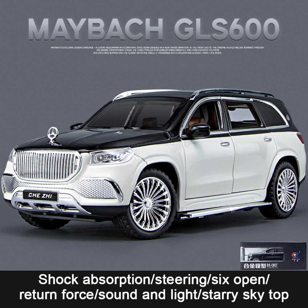 Luxus fĂŒr die Vitrine! đ Dieses atemberaubende 1:24 Modell des Mercedes-Maybach GLS600 ist ein absolutes Highlight fĂŒr jede Sammlung. Die Karosserie aus hochwertiger Zinklegierung wurde durch Hochtemperatur-Kompression und mehrmaliges Polieren zu einem echten Kunstwerk veredelt. Jede Linie des Originalfahrzeugs wurde detailgetreu nachgebildet! Im Innenraum findest du Zentralkonsole, Instrumententafel, Sitze und alle Schalter - alles originalgetreu. Sogar das Lenkrad trĂ€gt das Maybach-Logo und ist mit den VorderrĂ€dern verbunden! Zieh das Modellauto zurĂŒck und es fĂ€hrt von selbst vorwĂ€rts. Perfekt fĂŒr die Wohnzimmer-Vitrine, als BĂŒro-Deko oder als besonderes Geschenk fĂŒr Auto-Fans. Die lackierte OberflĂ€che ist hautfreundlich und umweltfreundlich - ein echter Hingucker! Einfach mit Alkohol und einem weichen Tuch reinigen. FĂŒr alle, die sich ein StĂŒck Luxus nach Hause holen wollen!