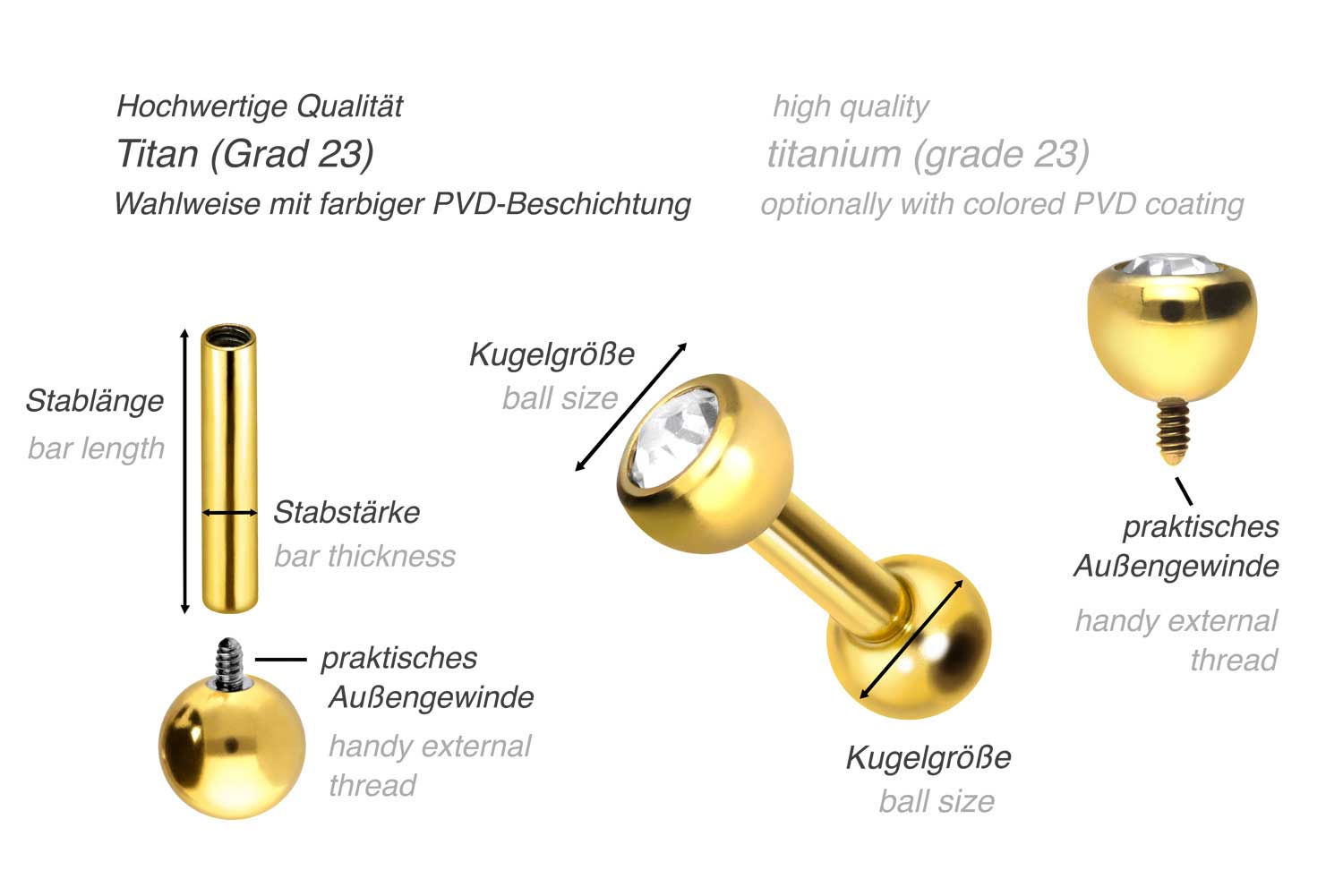 Wow, was für ein cooles Piercing-Teil! Dieser Tragus Stab aus Titan ist genau das Richtige für dein nächstes Ohr-Piercing oder zum Wechseln deines jetzigen Schmucks. Mit 1,2 mm Stärke und ner süßen 3 mm Kugel aus Epoxy - die sieht nicht nur gut aus, sondern hält auch ewig, weil die Steine nicht rausfallen können. Den Stab gibt's in verschiedenen Längen von 6-8 mm, also für jeden Tragus oder Helix perfekt geeignet. Titan ist super hautverträglich und verursacht keine Allergien - genau das was du für dein Piercing brauchst. Die klaren Steine sind dezent und passen zu jedem Outfit. Egal ob du schon Piercing-Profi bist oder dein erstes Stück suchst - mit diesem Qualitäts-Schmuck machst du nichts falsch. Einfach einsetzen und den Komfort genießen!