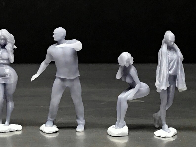 Super detaillierte Miniatur-Figuren im Maßstab 1:64! Aus Kunstharz, 2-2,8cm groß, perfekt für Modelleisenbahnen, Architekturmodelle oder Dioramen. Die unlackierte Oberfläche kannst du einfach mit Acrylfarben bemalen. Bringt Leben in deine Modell-Landschaften - ob Stadt, Bahnhof oder Landschaft. Für S-Modelleisenbahnen und alle 1:64 Projekte. Mach deine Modellbau-Kreationen damit noch realistischer. Für Sammler und Bastler die auf Details achten!