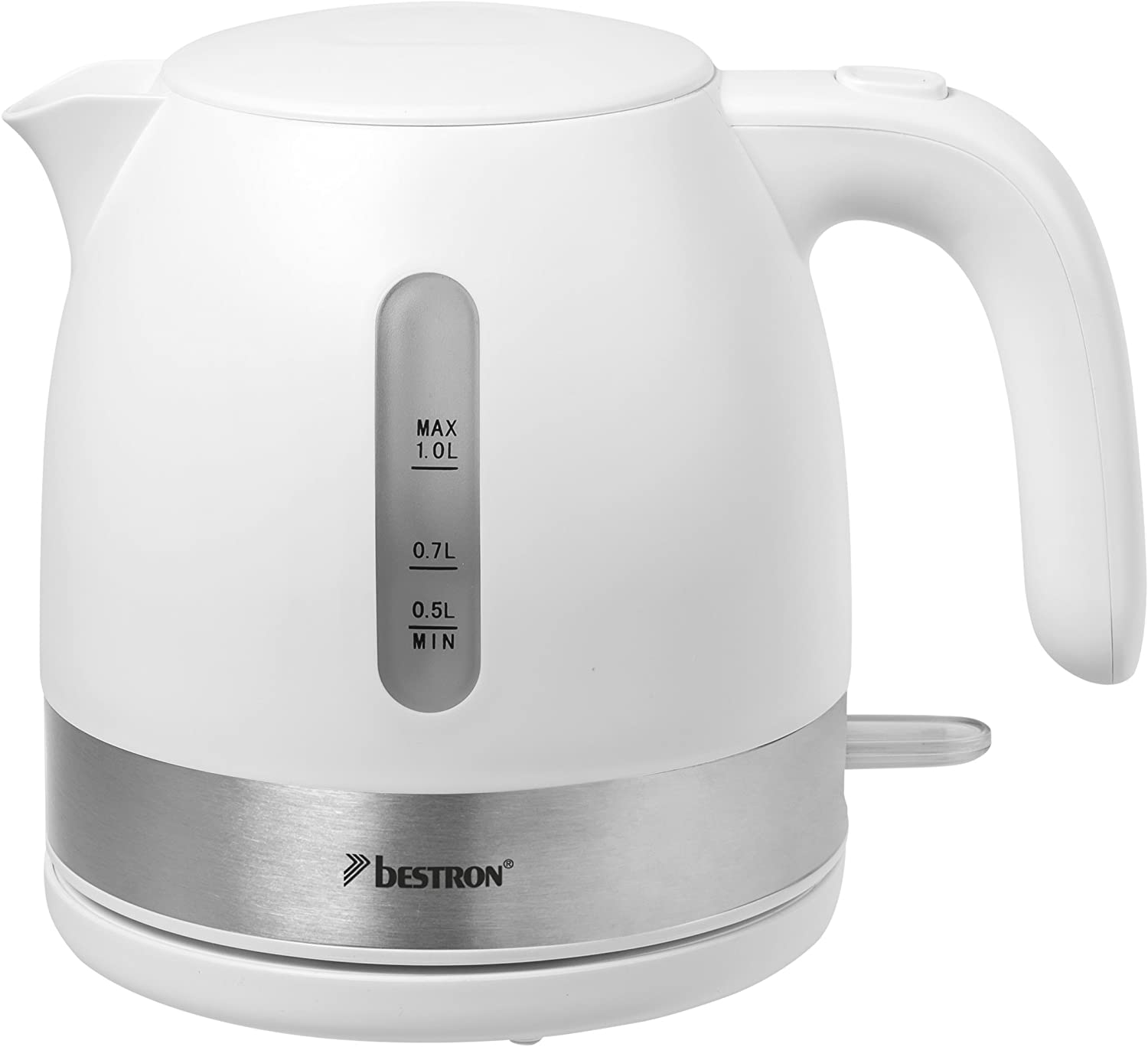 Heißes Wasser in Rekordzeit! Dieser Bestron Wasserkocher mit 2200 Watt Leistung bringt 1,7 Liter Wasser fix zum Kochen. Perfekt für Tee, Kaffee, Instantgerichte oder Babybrei. Der drehbare Standfuß ist mega praktisch - du kannst die Kanne in jede Richtung stellen. Und die Sicherheitsfeatures sind top: Kochstopp-Automatik und Trockenschutz verhindern Unfälle. Die Wasserstandsanzeige innen zeigt genau, wie viel drin ist. Mit 72 cm Kabel lang genug für jede Steckdose. Sieht schick aus in Schwarz und ist einfach zu reinigen. Für Zuhause, Büro oder sogar Camping - ein echter Allrounder!