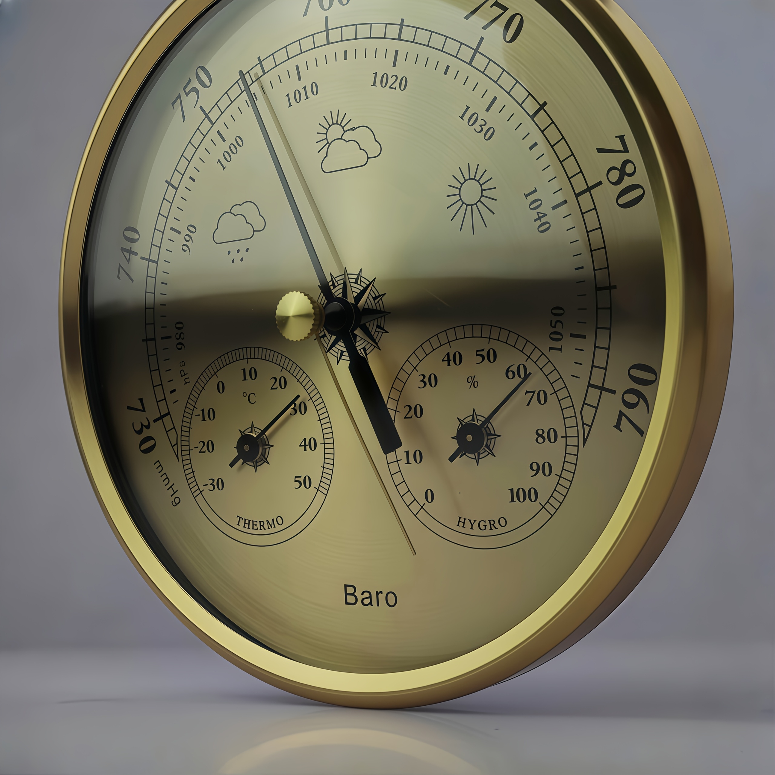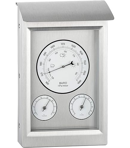 Wow, diese 3-in-1 Wetterstation ist ja der absolute Hingucker! In einem schicken Metallgehäuse vereint sie Barometer, Thermometer und Hygrometer - alles was du für deine eigene Wettervorhersage brauchst. Mit 130mm Durchmesser ist sie groß genug, um alles gut ablesen zu können, aber nicht zu aufdringlich an der Wand. Das Barometer misst den Luftdruck von 970 bis 1050 hPa, das Thermometer zeigt dir Temperaturen von -30 bis 50°C an und das Hygrometer die Luftfeuchtigkeit von 0-100%. Die Genauigkeit ist top: ±2°C bei der Temperatur, ±5% bei der Luftfeuchtigkeit und ±5 hPa beim Luftdruck. Das Beste: Keine Batterien nötig! Das mechanische Uhrwerk läuft einfach so vor sich hin. Perfekt für drinnen und draußen, ob im Wohnzimmer, Büro oder Gartenhaus. Einfach aufhängen und du kannst selbst vorhersagen, ob Regen oder Sonnenschein kommt. Sieht nicht nur professionell aus, sondern ist auch ein praktischer Helfer für alle Wetter-Begeisterten. Einfach klasse für alle, die wissen wollen, was das Wetter morgen macht!