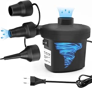 Schluss mit anstrengendem Pumpen! Diese Jsdoin elektrische Luftpumpe bläst und entleert aufblasbare Sachen im Handumdrehen. Mit 3 verschiedenen Düsen passt sie zu fast allem - Luftmatratzen, Pools, Schwimmringen oder aufblasbaren Sofas. Der leistungsstarke Motor arbeitet super schnell und dabei erstaunlich leise dank des speziellen Raddesigns. Kompakt und leicht, perfekt für Reisen, Camping oder den Garten. Einfach den gewünschten Anschluss wählen, Stecker in die Steckdose - und schon geht's los! Achtung: Nicht geeignet für Nadelventile wie bei Bällen oder Ballons. Der praktische Alleskönner für jeden Haushalt - ob für die spontane Übernachtung von Gästen oder den Kindergeburtstag im Garten. Nie wieder außer Puste beim Aufpusten!