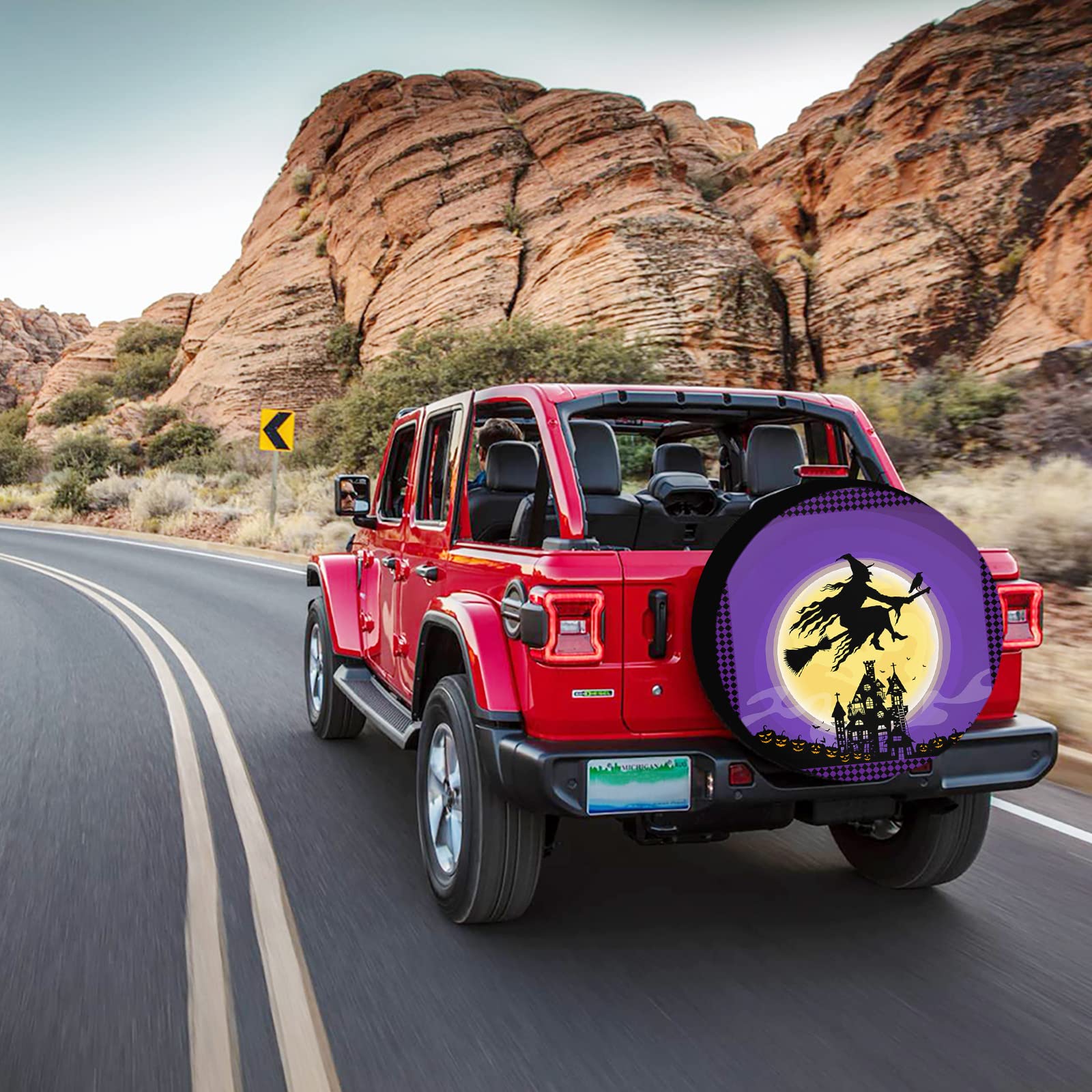 Diese Halloween Reifenabdeckung mit Hexe und Fledermäusen macht dein Reserverad zum echten Hingucker! 38,1 cm Größe passt für 70-74 cm Reifendurchmesser. Aus 1 mm reißfestem Polyester - komplett wasserdicht und UV-beständig. Schützt vor Sonne, Regen, Schmutz und verlängert die Reifenlebensdauer. Elastische Kordel für einfache Montage ohne Werkzeug. Hält auch bei Autobahngeschwindigkeit sicher. Weiche Innenschicht schützt die Felgen vor Kratzern. Perfekt für Jeep, Wohnwagen, SUV und mehr. Stylisch und praktisch zugleich!