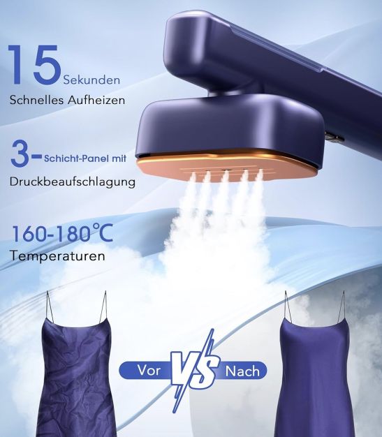 Boah, dieser 2-in-1 Dampfglätter ist ja praktisch! Funktionier als normales Bügeleisen UND als Dampfgarer - mit 4 Bügelmodi und LED-Display. 1200 Watt stark - heizt in nur 25 Sekunden auf und produziert 12 Minuten lang Dampf! Mit 360° Anti-Überlauf-Technologie - da kannst du in jedem Winkel dampfen ohne Sauerei. Drei Dampfstufen von 6-22 g/min und konstante 140°C - perfekt für Seide, Baumwolle, Wolle und mehr. Nur 0,9 kg schwer und 10,3 Zoll lang - super für unterwegs! Mit faltbarem Griff - passt in jeden Koffer. 6-Fuß-Netzkabel für bequeme Bedienung. Ob zu Hause oder auf Reisen - mit diesem Teil bist du immer perfekt gebügelt! Einfach auspacken und faltenfrei durchstarten - besser geht's nicht!