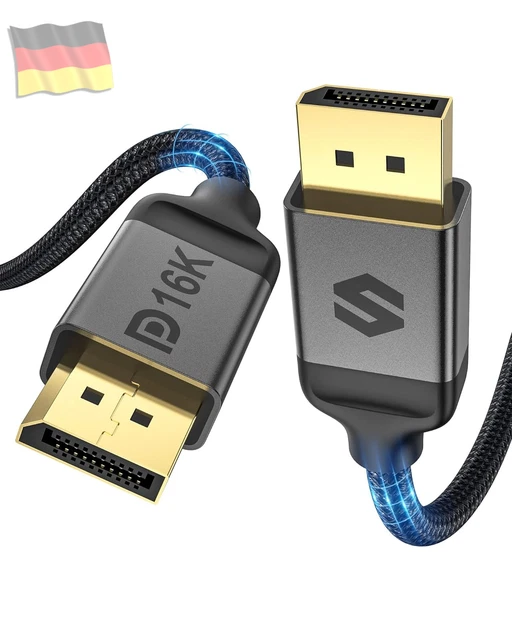 Gaming in nächster Dimension! Dieses VESA-zertifizierte DisplayPort 2.1 Kabel bringt dein Setup auf Overkill-Level. Mit 80Gbps Bandbreite - dreimal schneller als DP 1.4! Unterstützt 16K@60Hz, 8K@240Hz und 4K@480Hz - absolut krass! Voll kompatibel mit FreeSync, G-Sync, HDR und HDCP 2.3. Perfekt für High-End Grafikkarten wie RTX 4090/5090 oder AMD Radeon RX 7900. Das 1,5m Kabel hat Aluminium-Gehäuse, Nylon-Mantel und dreifache Abschirmung gegen Störungen. Daisy-Chaining für Multi-Monitor-Setups möglich. Einfach Plug & Play - keine Treiber nötig. Ob für kompetitives Gaming, Video-Editing oder Multi-Tasking - dieses Kabel macht einfach alles mit. Upgrade dein Setup jetzt!