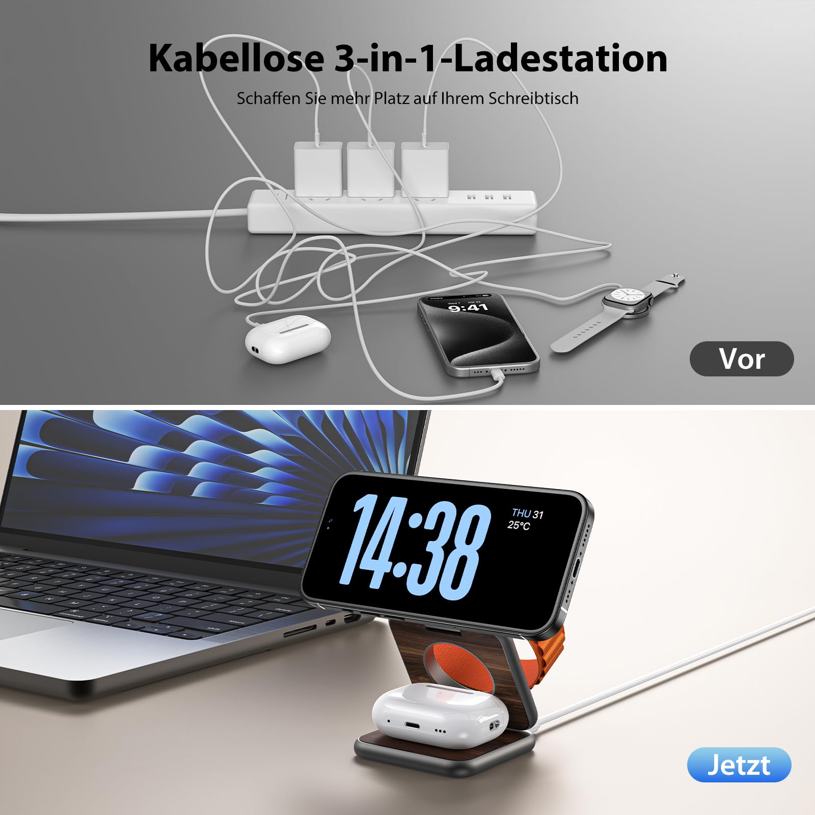 • 3-in-1 Kabellose Ladestation - Wireless Charger Für Handy, Smartwatch & Kopfhörer