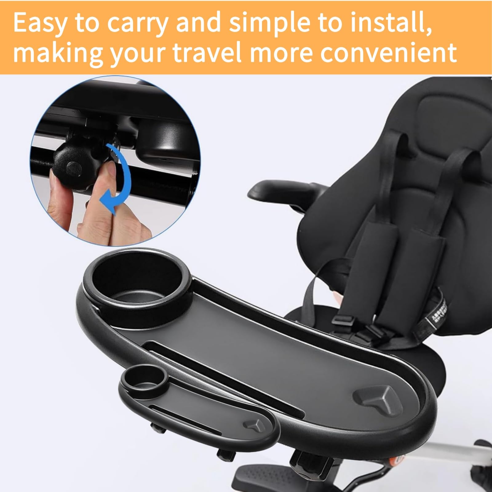 Dieses praktische Tablett ist der absolute Gamechanger für alle Eltern unterwegs! Einfach am Kinderwagen befestigen und schon hat dein Kind alles griffbereit: Die Snackbox mit Deckel hält Kekse und Obst sauber, der Getränkehalter nimmt Flaschen und Becher sicher auf, und sogar ein Handyhalter ist dabei - damit Mama und Papa die Hände frei haben. Die flexiblen Silikonarme mit Stahlverstärkung passen an fast alle Kinderwagen von Chicco, Uppababy, Graco und vielen mehr. Aus lebensmittelechtem ABS-Material und super leicht zu reinigen. Kein lästiges Bücken mehr nach heruntergefallenen Sachen! Das hohle Design im Getränkehalter verhindert üble Gerüche. Ein Muss für jeden Ausflug und ein super Geschenk zur Babyparty!