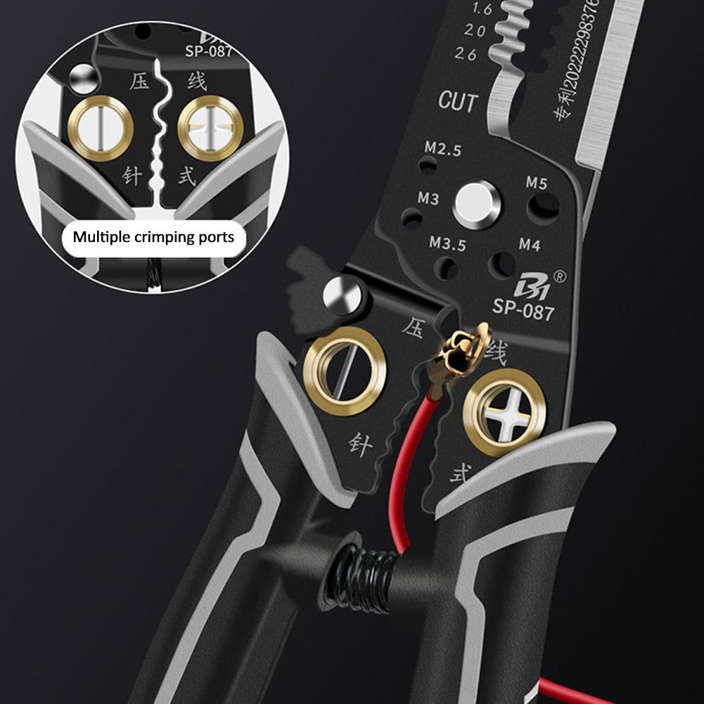 Diese 9-in-1 Abisolierzange ist der absolute Alleskönner für Elektro-Arbeiten! Aus Kohlenstoffstahl (HRC 58-62) - mega robust und scharf. Funktionen: Abisolieren (0,8-4mm), Schneiden, Crimpen, Wickeln, Spalten und Strom messen! Mit Amperemeter - siehst sofort ob Strom fließt. Ergonomische TPR-Griffe - bequem auch bei langer Arbeit. 21cm lang, 350g schwer - handlich aber kraftvoll. Sicherheitsverriegelung - transport-sicher. Ob für Profis oder Heimwerker - damit machst du jede Elektro-Arbeit perfekt!