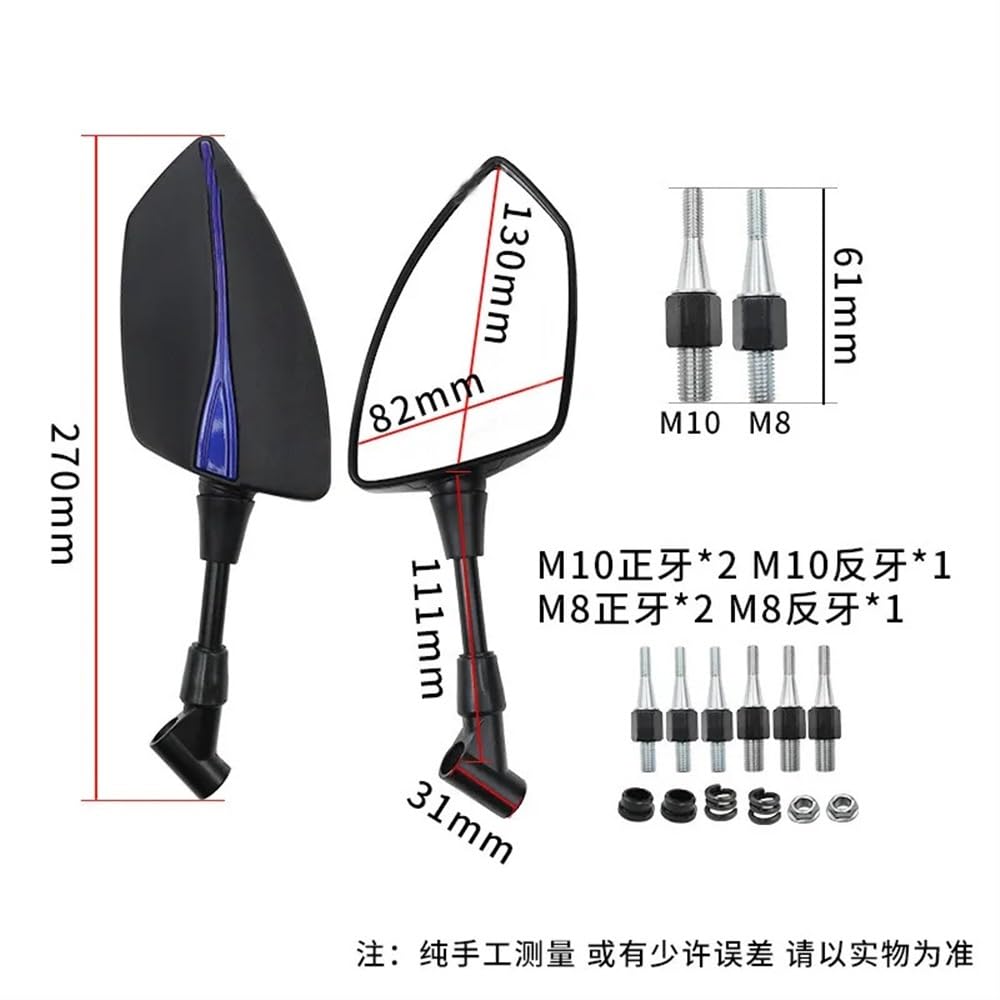 Biker, mehr Sicherheit und Style für deine CFMOTO! Diese Lenkerendenspiegel passen perfekt für NK150, NK250, NK400, NK650 und NK650MT Modelle. Aus Metall und Kunststoff - robust und rostfrei. Die konvexen Spiegel geben dir einen super Weitwinkel-Blick nach hinten, ohne dass du dich umdrehen musst. Mehrfach verstellbar (vertikal/horizontal), sodass du den optimalen Blickwinkel findest. Das klare Spiegelglas verzerrt nicht und gibt dir ein klares Bild. Einfache Montage - aber bitte die Schrauben gut festziehen, damit nichts wackelt! Sieht sportlich aus und verbessert deine Übersicht im Verkehr. Ein kleines Upgrade mit großer Wirkung für deine Sicherheit auf der Straße.