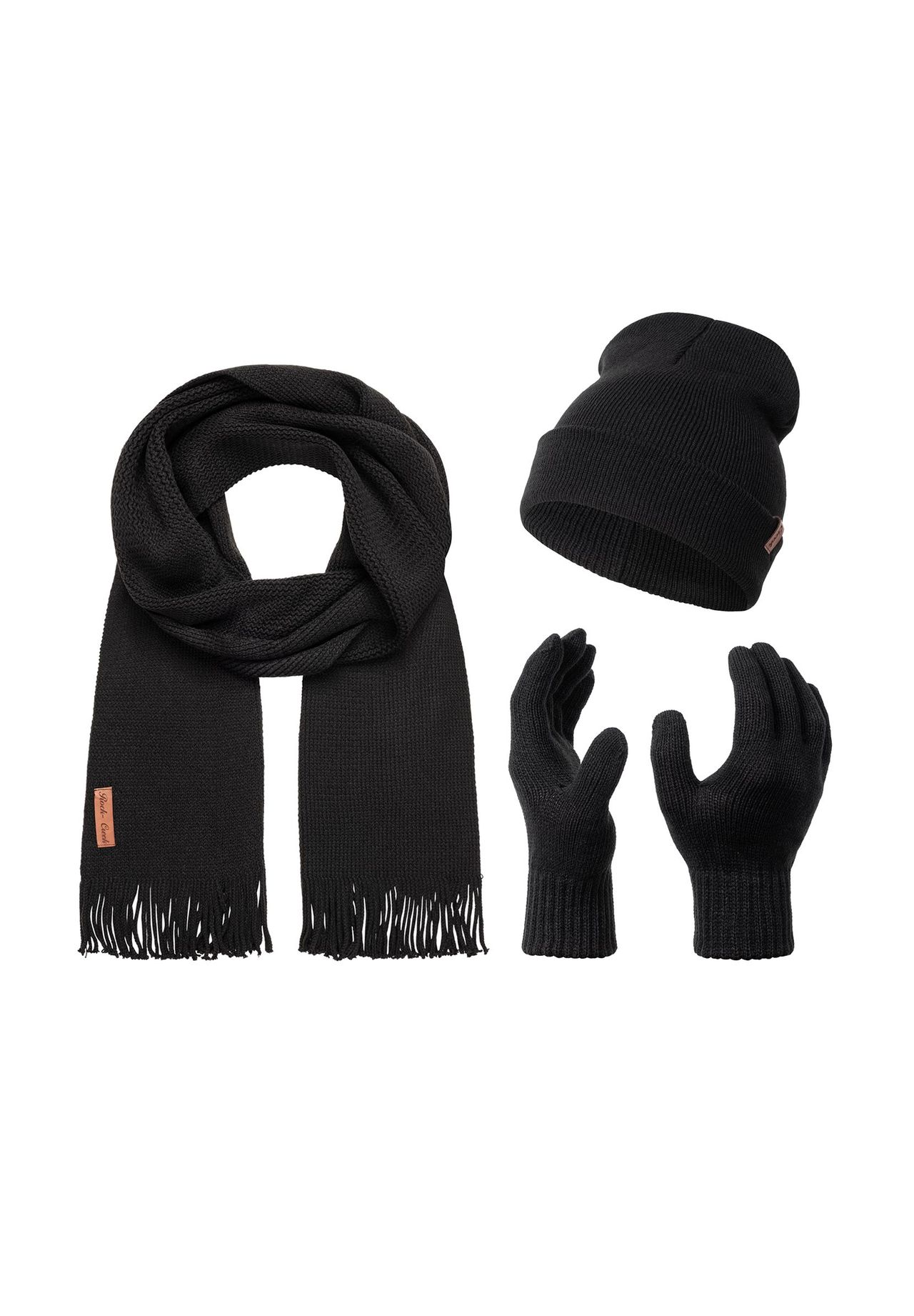 Perfekt gerüstet für den Winter mit diesem stylischen 3-in-1-Set! Du bekommst eine kuschelige Strickmütze mit coolem Jacquard-Muster, einen extra langen Schal und praktische Touchscreen-Handschuhe - alles im gleichen Farbschema, also super einfach zu kombinieren. Das Besondere: Die Handschuhe haben spezielle leitfähige Fasern an den Fingerspitzen, damit du dein Smartphone auch bei Kälte bedienen kannst ohne auszuziehen. Aus weichem Chenille-Polyester gefertigt, fühlt sich alles mega weich an und ist dabei richtig warm. Die Mütze hat ein integriertes Guckloch für bessere Sicht und sitzt dank Bündchen perfekt. Ob für den Weg zur Arbeit, beim Winterspaziergang oder für Outdoor-Sport - mit diesem Set bist du immer bestens geschützt und siehst dabei noch richtig gut aus! In verschiedenen Farben erhältlich - da ist für jeden Geschmack was dabei.
