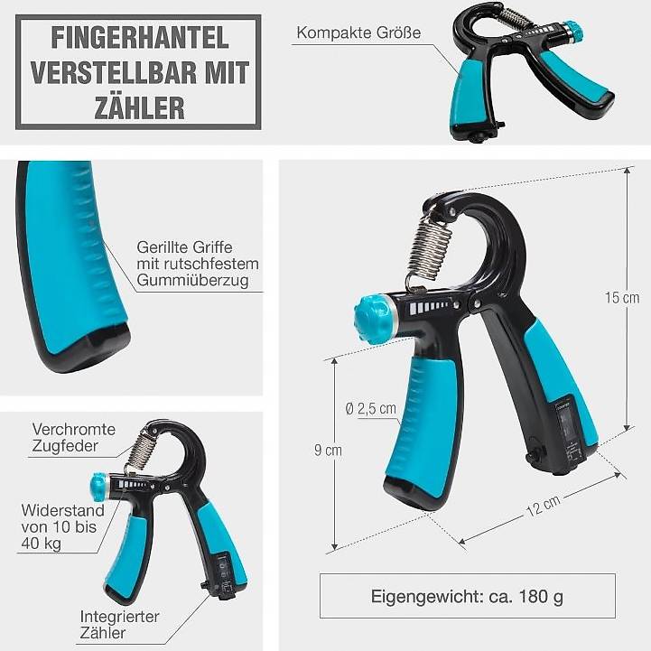 Boah, diese Fingerhantel ist ja mal richtig professionell! Verstellbar von 10 bis 100kg Widerstand - da kannst du dich so richtig steigern. Perfekt für Handkraft-Training, Rehabilitation oder einfach um kräftigere Hände zu bekommen. Mit praktischem Zähler der deine Wiederholungen mitzählt - inklusive Reset-Funktion um deine Fortschritte zu verfolgen. Aus hochwertigen Materialien: ABS, TPR und Karbonstahl für maximale Haltbarkeit. Die Feder hat 4mm Durchmesser für optimale Trainingseffizienz. Maße: 13x17x2,5cm, Gewicht nur 232g - also super kompakt und leicht zu transportieren. Automatische Abschaltfunktion spart Batterie. Ideal für Sportler, Kletterer, Musiker oder einfach jeden der seine Handkraft verbessern will. Einfach Widerstand einstellen, zudrücken und die Wiederholungen zählen lassen. Macht Training so viel motivierender wenn du deine Fortschritte siehst! Ein absolutes Must-Have für jedes Handkraft-Training.