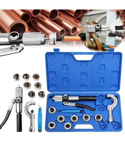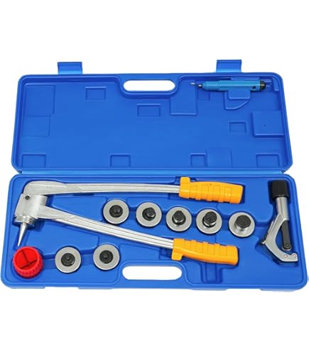 Professionelles Aufweiten war noch nie so einfach! Dieses komplette Rohraufweiter-Set enthält 7 verschiedene Bördelspitzen für Rohrdurchmesser von 10-28 mm. Perfekt für Kupfer-, Aluminium- und weiche Stahlrohre. Aus robustem Stahl gefertigt für lange Haltbarkeit. Im Set enthalten: Aufweitergriff, 7 Spitzen, Rohrschneider, Anfaswerkzeug und Entgratungsfräse - alles sicher verpackt im praktischen Transportkoffer. Ideal für Kälteanlagen, Sanitärinstallationen und Heimwerker-Projekte. Einfache Handhabung mit dem Zweihandgriff für ermüdungsfreies Arbeiten. Dein Allrounder für perfekte Rohrverbindungen!