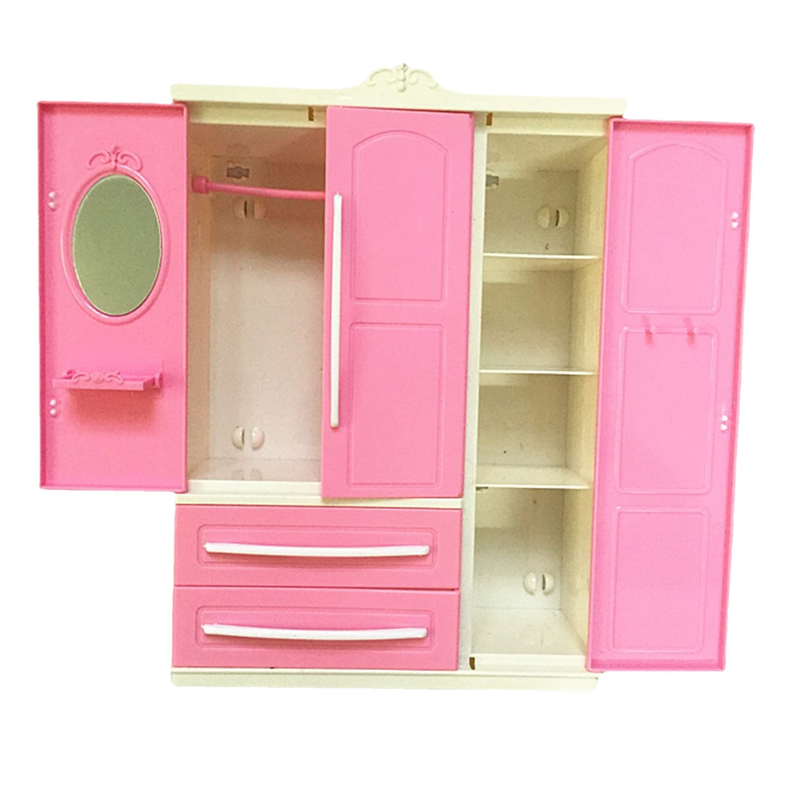 Endlich Ordnung im Puppenhaus! Dieser praktische Kleiderschrank für Puppen ist der perfekte Aufbewahrungsplatz für all die süßen Outfits und Accessoires. Mit 27x18,2x16,3 cm (zusammengebaut) bietet er genug Platz für die Kleidung von 15/17cm Puppen. Im Set enthalten: 1 faltbarer Schrank, 10 Kleiderbügel, 2 Stangenhalter und 1 Wäschestange. Das zweitürige Design gibt den Blick frei auf die ganze Puppenmode. Wenn du mal keinen Platz brauchst, klappst du ihn einfach flach zusammen - nur 6 cm hoch! Aus stabilem Kunststoff gefertigt, kannst du mehrere Schränke übereinander stapeln und so eine richtige Puppen-Garderobe aufbauen. Die Montage ist kinderleicht: Halter einkleben, Stange montieren, Bügel aufhängen - fertig! Ein tolles Geschenk für alle Puppenliebhaber und die, die es noch werden wollen.