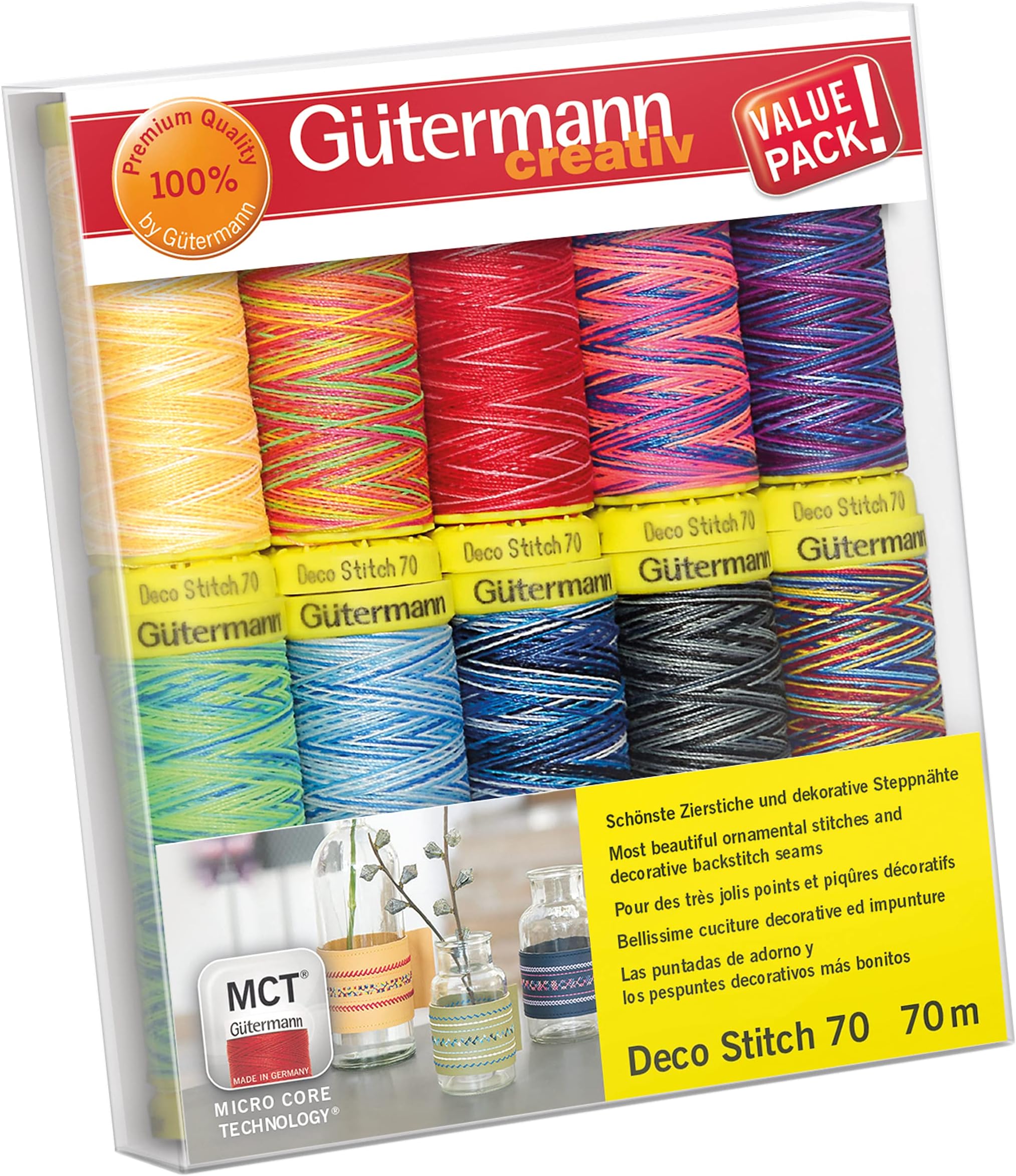 Das ultimative Starter-Set für alle Nähbegeisterten! Dieses praktische Gütermann Set enthält 10 farbenfrohe Allesnäher-Spulen à 100 Meter plus ein qualitatives Schneidermaßband. Die Micro Core Technology sorgt für besonders gleichmäßige, flusenfreie und reißfeste Nähte - made in Germany! Egal ob du von Hand nähst oder die Nähmaschine verwendest, diese Fäden bewähren sich bei allen Stoffarten. Perfekt für Schließnähte, Steppnähte oder dekorative Zierstiche. Das beiliegende Maßband mit farbiger Dezimetereinteilung macht präzises Messen zum Kinderspiel. Die Fäden sind bei 95°C waschbar, chemisch reinigbar und bügelbar. Verwende am besten Universalnadeln in Stärke NM 70-90 für optimale Ergebnisse. Seit über 150 Jahren steht Gütermann für höchste Qualität in der Textilbranche - jetzt auch für deine Nähprojekte! Ideal für Anfänger und Profis gleichermaßen. Mit diesen kräftigen Farben werden deine Kreationen zum echten Hingucker. Tipp: Die Fäden eignen sich sowohl für Bekleidung als auch für Heimtextilien und sind extrem langlebig.