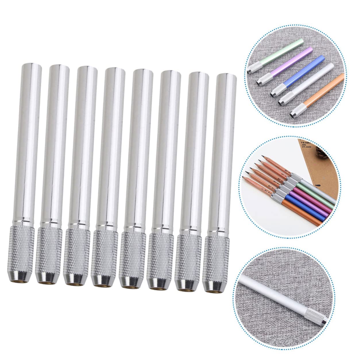 Schluss mit wegwerfen von kurzen Bleistiften! Diese 10 Bleistiftverlängerer aus Edelstahl sind die Rettung. Das geniale doppelseitige Design nimmt zwei kurze Stifte gleichzeitig auf. Jeder Verlängerer ist etwa 13,4 cm lang und super leicht - passt easy ins Federmäppchen oder in die Handtasche. Aus robustem Edelstahl gebaut, halten sie ewig. Perfekt für Schule, Büro oder Künstler. Kein Verschwenden mehr von Stiften, die eigentlich noch gut sind! Super praktisch für Lehrer, Schüler, Büroangestellte oder jeden, der viel zeichnet oder schreibt. Auch ein tolles Geschenk für kreative Köpfe. Einfach den Stummel reinstecken und weiter geht's wie mit einem neuen Stift. Spart Geld und ist umweltfreundlich!