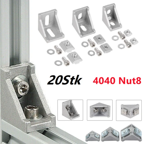 Perfektes Set für deine DIY-Projekte! Enthalten sind 10 stabile Eckwinkel aus Aluminium, 20 T-Muttern und 20 Sechskantschrauben M5x8mm - alles was du für stabile Verbindungen brauchst. Die Winkel sind aus hochwertiger Aluminiumlegierung gefertigt und eloxiert für zusätzliche Härte. Ideal für Aluminiumprofile der Serie 2020 mit 6mm Nut. Du kannst die Winkel für T-förmige oder L-förmige Verbindungen verwenden - total flexibel! Perfekt für 3D-Drucker, Regale, Tische, Werktische oder Schutzzäune. Die Montage ist super einfach: Profil einlegen, T-Mutter positionieren, Schraube festziehen - fertig! Alles sitzt bombenfest und sieht dabei noch professionell aus. Ob in der Werkstatt, im Hobbykeller oder für Möbelbau - mit diesem Set bist du bestens ausgestattet. Die silberne Oberfläche passt zu allen Aluprofilen. Mach deine Projekte stabil und langlebig! Ein Muss für jeden Heimwerker und Profi.