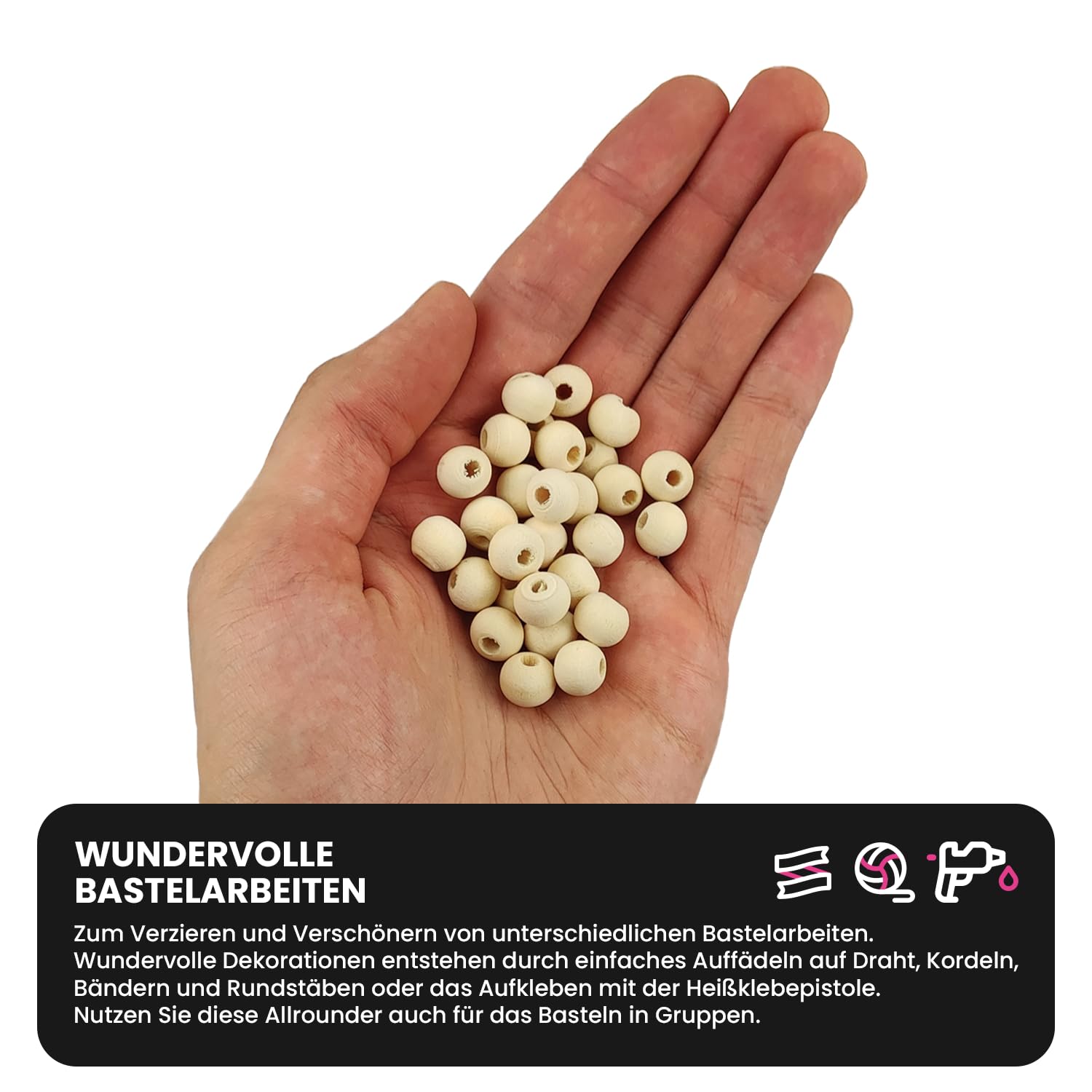 Entdecke die Welt des DIY-Schmucks mit diesen wunderschönen naturfarbenen Holzperlen! Im Set sind 10 runde Holzkugeln mit 40mm Durchmesser und 6,4mm Lochung enthalten.