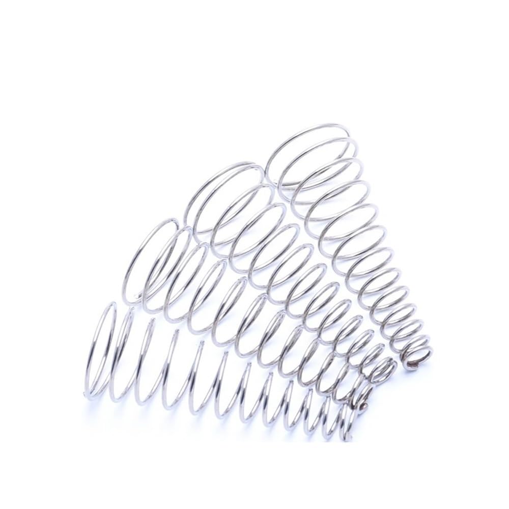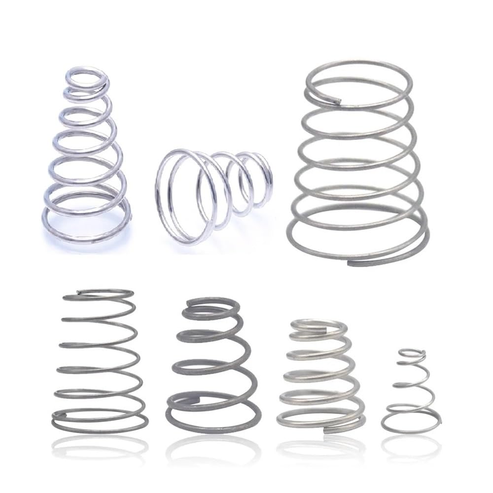Praktisches Set mit 10 konischen Druckfedern aus Edelstahl 304! Drahtdurchmesser 0.8mm, kleiner Durchmesser 10mm, großer Durchmesser 18mm, Höhe 20mm. Perfekt für verschiedene Projekte in Werkstatt, Modellbau oder Reparaturen. Die Federn sind korrosionsbeständig und temperaturbeständig - halten also ewig. Die konische Form sorgt für gleichmäßige Druckverteilung. Super für alle, die mal eine spezielle Feder brauchen. Einfach bestellen und für dein nächstes Projekt bereithalten. Qualität, auf die du dich verlassen kannst!