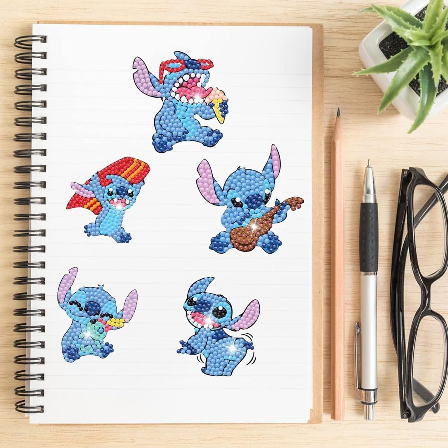 Kreativer Spaß für kleine Künstler! Dieses süße Stitch Diamond Painting Set enthält 10 verschiedene Motive zum Bekleben. Mit allem Zubehör: Kleber, Stift, Tablett und vielen bunten Diamanten. Einfaches Malen-nach-Zahlen-Prinzip - auch für Anfänger super geeignet. Die runden Diamanten sind aus umweltfreundlichem Harz, ungiftig und geruchlos. Nach dem Bekleben können die Kunstwerke als Aufkleber überall angebracht werden - auf Flaschen, Handys oder Notizbüchern. Fördert Konzentration und Feinmotorik. Perfekt für Kindergeburtstage, als Geschenk oder für gemütliche Bastelnachmittage. Einfach auspacken und loslegen - der Kreativität sind keine Grenzen gesetzt!