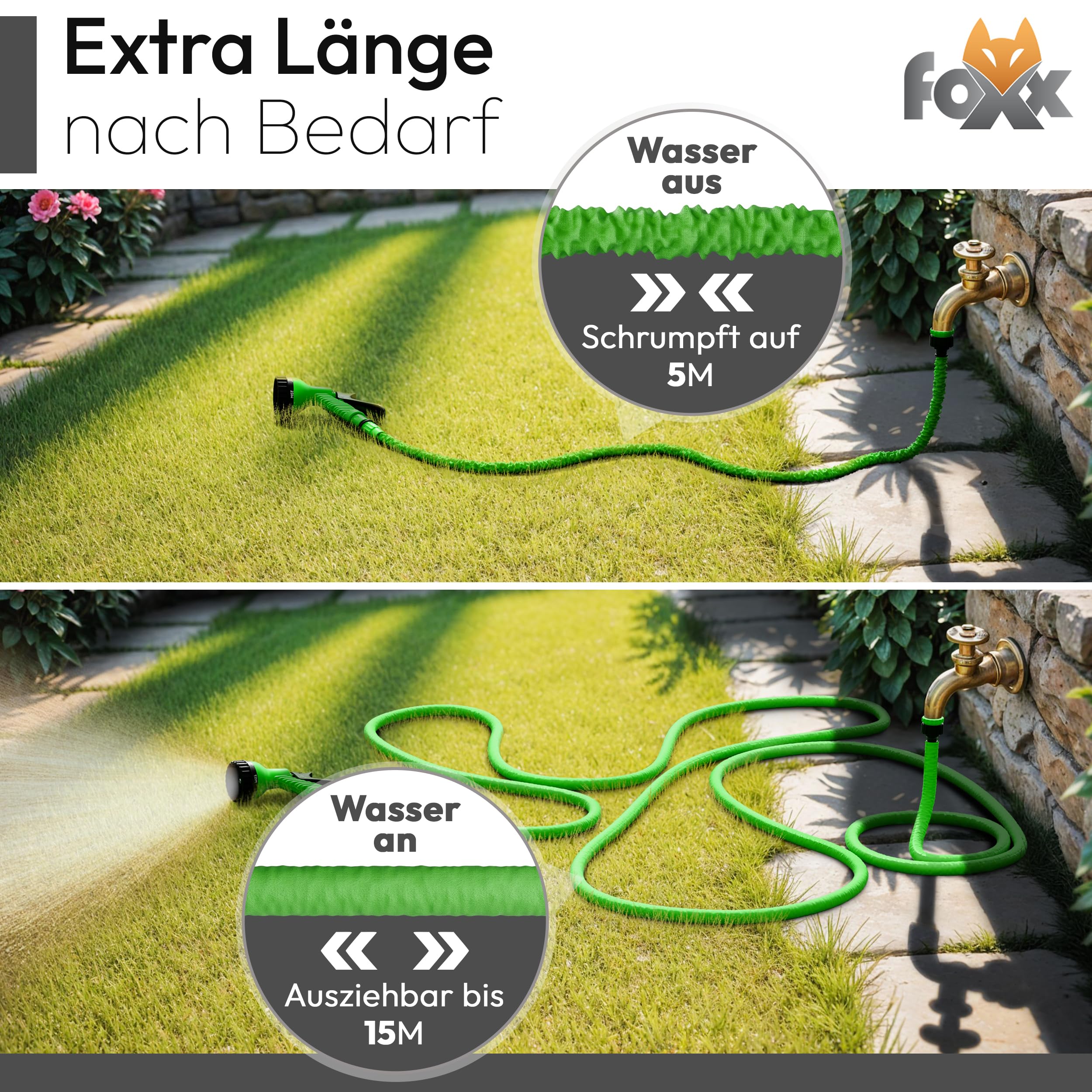 Mega praktisch dieser Gartenschlauch! 15 Meter lang aber total flexibel und knickfrei - kein Ärger mehr mit verdrehten Schläuchen! Mit 10 verschiedenen Strahlarten - von sanft für Blumen bis kräftig fürs Auto. Aus verdicktem PVC mit hochdichtem Gewebe, hält bis zu 600 PSI aus! 50% leichter als normale Schläuche - selbst Oma kann den tragen. Temperaturbereich von -40°C bis 65,6°C - also ganzjährig nutzbar. Perfekt für Garten, Hof, Autowäsche oder Camping. Der gleichmäßige Wasserfluss ist super, kein Dehnen oder Schrumpfen. Macht Gartenarbeit richtig Spaß! Einfach anschließen und loslegen - mehr Komfort geht kaum!