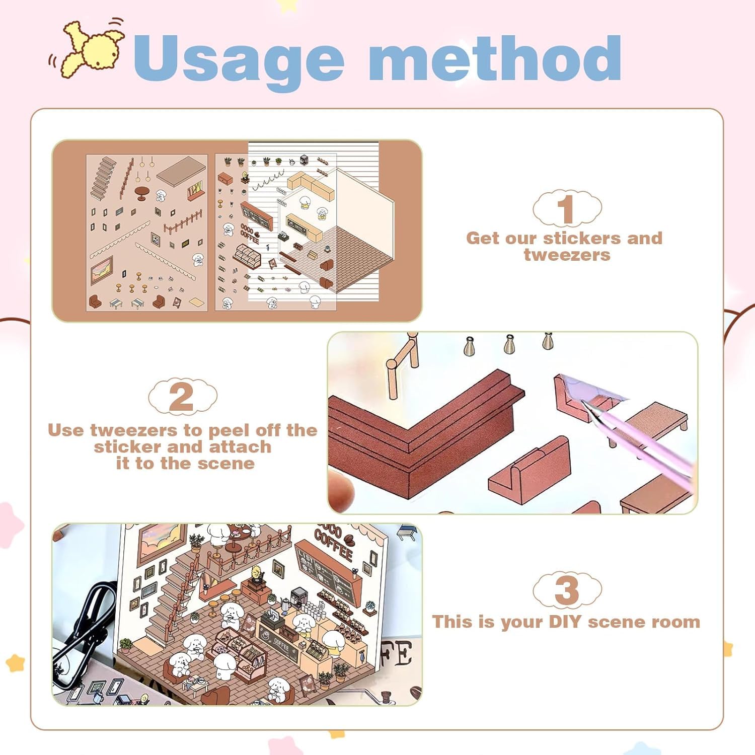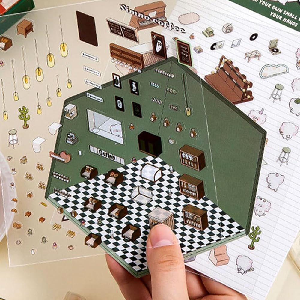 Mega cooles DIY-Projekt für kreative Stunden! Dieses 3D House Sticker Set mit 10 verschiedenen Themen bringt stundenlangen Spaß - ob alleine oder mit Kindern. Enthalten sind komplett verschiedene Szenen wie Supermärkte, Vergnügungsparks, Cafés, Restaurants und mehr - alles mit süßen Tier-Cartoons. Einfach die hochwertigen PET-Aufkleber mit der beiliegenden Pinzette abziehen und auf die entsprechenden Flächen im Buch kleben. Die Aufkleber haben tollen 3D-Effekt und sehen nachher aus wie kleine, dreidimensionale Räume! Perfekt zum Abschalten und Entspannen nach einem stressigen Tag - aber auch super für Kinder, um Feinmotorik und räumliches Vorstellungsvermögen zu trainieren. Die Qualität ist top: Hochauflösender Druck, kräftige Farben, und die Aufkleber bleiben lange schön. Du kannst die fertigen Kunstwerke dann als Deko in deinem Zuhause verwenden - oder verschenken! Egal ob im Wohnzimmer, im Büro oder im Kinderzimmer - die kleinen Häuschen sehen einfach überall niedlich aus. Ein ideales Geschenk für kreative Menschen, zur Beschäftigungstherapie, oder einfach als gemeinsames Projekt für die Familie. Suchst du nach einer Alternative zu Handy und Fernseher? Hier ist sie!