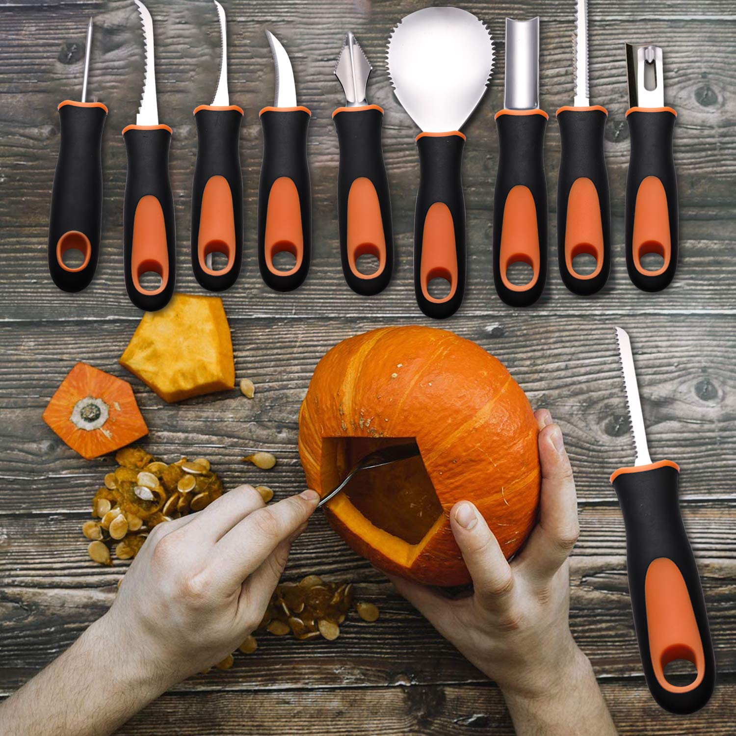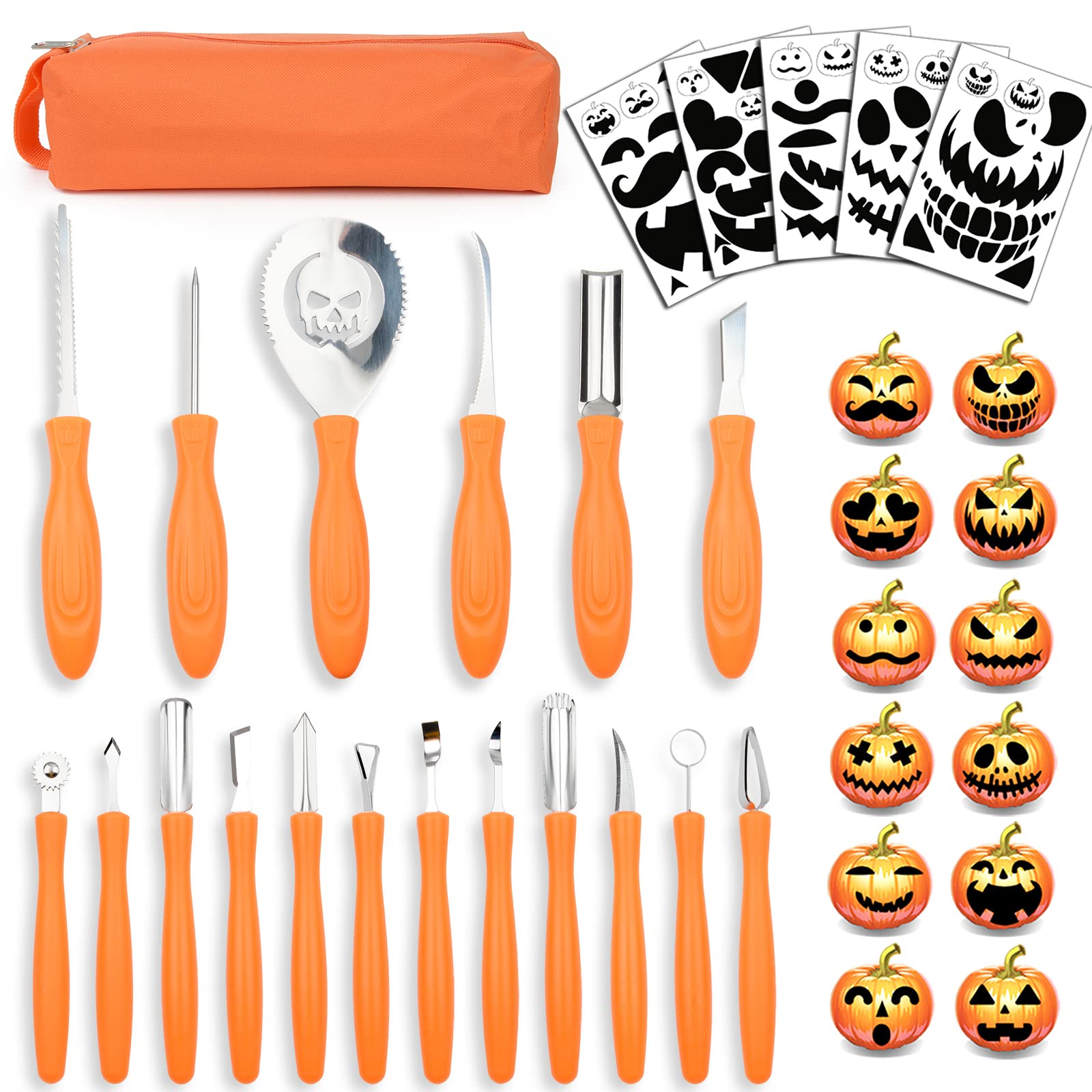 Boah, Halloween steht vor der Tür und dieses Kürbis-Schnitzset von Trendecor ist einfach perfekt für gruselige Kürbislaternen! Im Set findest du 10 hochwertige Werkzeuge aus rostfreiem Edelstahl mit orangenen ABS-Griffen - total rutschfest und ergonomisch geformt, damit auch Kinderhände gut zurechtkommen. Da sind Schaufeln, Sägen, Bohrer und Feinschnitzwerkzeuge dabei, echt komplett! Plus 20 coole Schablonen mit Motiven wie Spinnen, Gespenster, Hexen und Katzen - da kann wirklich jeder kreativ werden. Ob du Anfänger oder Profi bist, mit diesem Set machst du auf jeden Fall was her! Die Aufbewahrungstasche aus Nylon ist super praktisch, damit nichts verloren geht. Einfach nach dem Schnitzen mit Wasser und Schwamm reinigen und trocknen - die Teile rostet nicht und bleiben ewig scharf. Perfekt für Familien, um gemeinsam zu basteln und die Vorfreude auf Halloween zu steigern. Deine Kinder werden total stolz auf ihre selbstgemachten Kürbislaternen sein - und ihr habt garantiert die coolsten Kürbisse in der ganzen Nachbarschaft!