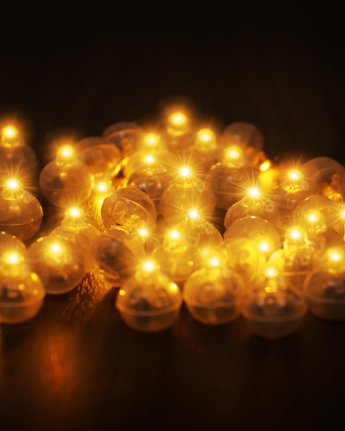 Hey, mach deine Party zum echten Highlight! 100 Mini-Ballonlichter in warmweiß - perfekt für Ballons, Papierlaternen, Kürbisse oder Glasgefäße. Einfach zu aktivieren: Kunststofflasche ziehen und sofort leuchtet's! Zum Ausschalten Lasche zwischen die Batterien schieben. Helle, nicht blinkende LEDs - energiesparend und langlebig. Halten bis zu 36 Stunden - reicht für jede Party! LR41 Batterien sind austauschbar - kannst du immer wieder verwenden. Aus hochwertigem Kunststoff - leicht und robust. Perfekt für Hochzeiten, Geburtstage, Weihnachten, Halloween - für jede Feier! Schafft eine gemütliche, festliche Atmosphäre. Einfach in die Deko integrieren - sofortiger Wow-Effekt! Deine Gäste werden begeistert sein!