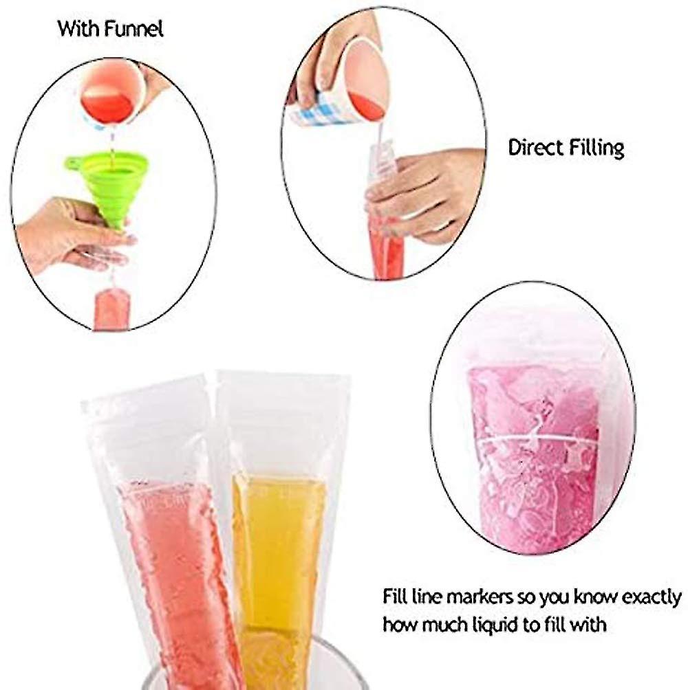 Eis am Stiel selber machen war noch nie so einfach! Mit diesen 100 praktischen Eisbeuteln plus Trichter kreierst du im Handumdrehen deine eigenen Eisleckereien. Einfach deine Lieblingsmischung aus Joghurt, Saft oder Smoothie einfüllen, verschließen und ab ins Gefrierfach. Die auslaufsichere Versiegelung hält alles sicher drin - auch wenn die Kids mal wild damit rumfuchteln! Aus dickem, BPA-freiem PE-Material in Lebensmittelqualität, absolut sicher für Groß und Klein. Die durchsichtigen Beutel zeigen die bunten Früchte von innen - sieht nicht nur lecker aus, sondern macht auch Spaß! Tipp: Nur zu 80% befüllen, damit sich das Eis ausdehnen kann. Perfekt für Sommerpartys, Kindergeburtstage oder einfach für gesunde Snacks zwischendurch. Eis-Spaß pur!