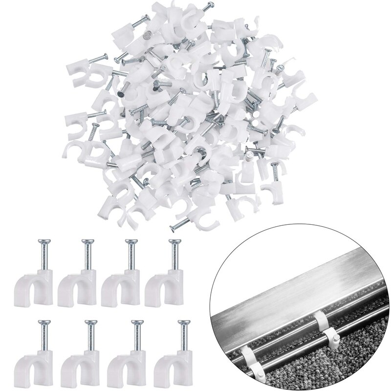 Produktdetails: • 100 Stück Kabelclips • Inkl. Stahlnägel • Für Kabel bis 14mm • Material: Robuster PE-Kunststoff • Einfache Montage mit Hammer • Für Wand, Holz, Putz, Ziegel • Ideal für Ethernet, TV, Koaxialkabel