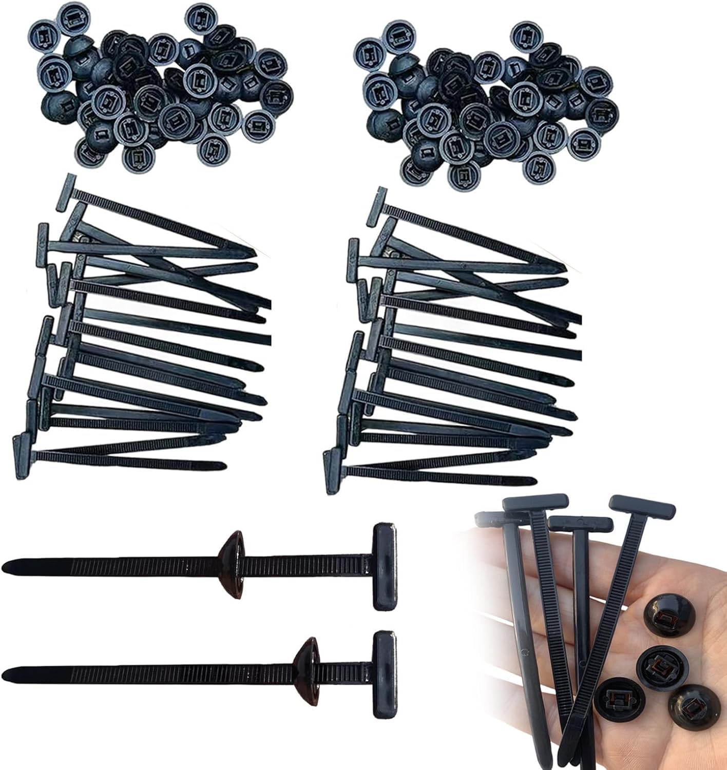 Achtung, Organisationstalente und Auto-Schrauber! Diese 100 Nylon Kabelbinder mit praktischem Clip sind die Alleskönner für Werkstatt, Haushalt und Auto! Aus hochfestem, UV-beständigem Nylon gefertigt, halten sie auch bei widrigsten Bedingungen stand - ob Regen, Hitze oder Abrieb. Die Self-Locking Funktion ermöglicht werkzeuglose Montage - einfach durchziehen, festziehen und schon hält's! Perfekt für Auto-Reparaturen: Ersetzen sie problemlos Schrauben und Clips an Kotflügeln, Kofferraumverkleidungen, Motorhauben und Unterbodenverkleidungen. Aber nicht nur fürs Auto super - auch im Haushalt, in der Garage oder auf der Baustelle unverzichtbar! Ob zum Bündeln von Kabeln, Organisieren von Werkzeugen oder Sichern von Ausrüstung - diese Kabelbinder sind echte Multitalente. Mit ca. 9cm Länge und 2cm Breite die ideale Größe für die meisten Anwendungen. Das 100er-Set bietet genug Vorrat für mehrere Projekte. Kompakt verpackt, perfekt für die Werkzeugtasche oder den Notfallkoffer im Auto. Einfach anwenden, festziehen und sich über ordentliche Kabel und sichere Befestigungen freuen!