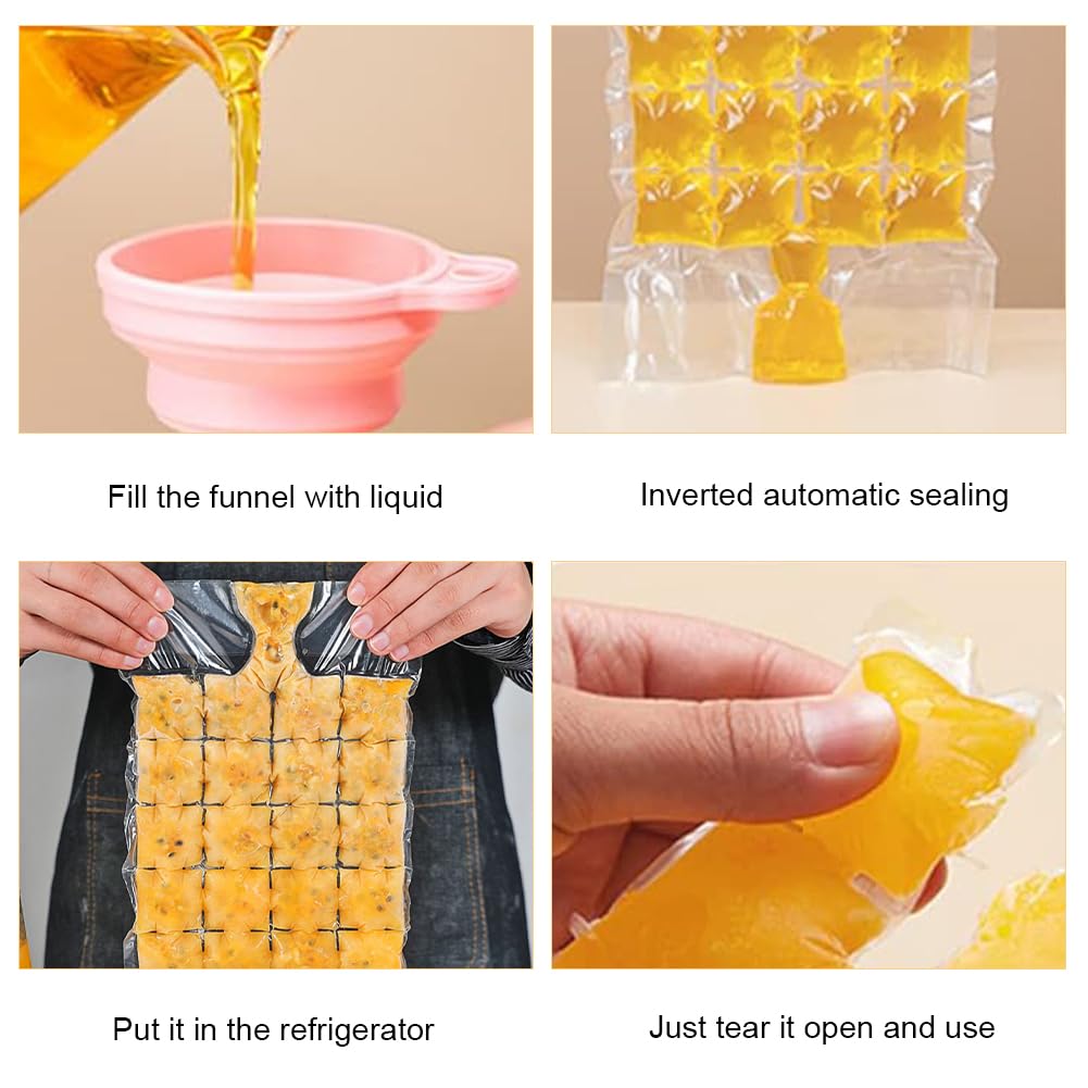 Wow, diese Eiswürfelbeutel sind ja mal richtig clever! 100 Stück im Set - da hast du lange was von! Aus lebensmittelechtem PE-Material - also absolut sicher und hygienisch. Das selbstverschließende Design verhindert lästiges Auslaufen und hält Gerüche fern. Mit zwei praktischen Silikon-Trichtern wird das Befüllen zum Kinderspiel. Einfach Wasser rein, verschließen, ab in den Gefrierschrank - und schon hast du perfekte Eiswürfel! Viel schneller als herkömmliche Eiswürfelbehälter. Perfekt für Cocktails, Whiskey oder gekühlte Getränke im Sommer. Aber nicht nur für Eis - auch für Obst, Babynahrung oder andere Leckereien geeignet. Einfach ein praktisches Helferlein für jede Küche!