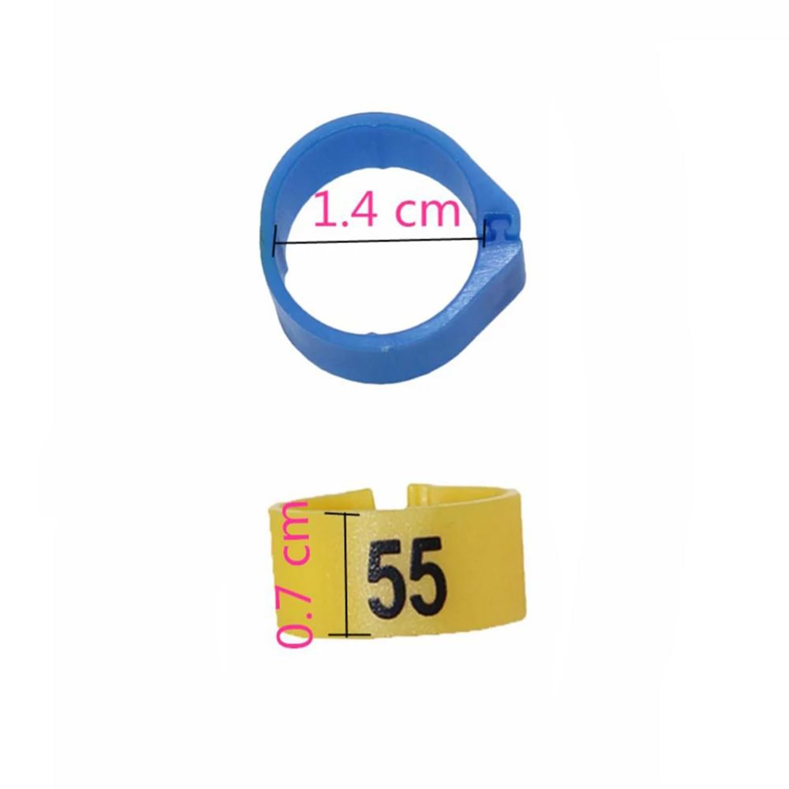 Für alle Geflügelhalter und Vogelliebhaber! Diese 100 Plastik-Fußringe im praktischen 14mm Innendurchmesser sind super für die Kennzeichnung deiner Tiere. Aus leichtem Kunststoff gefertigt, sind sie wiederverwendbar und sitzen angenehm ohne zu stören. Perfekt für Hühner, Enten, Truthähne und andere Geflügelarten. Mit den nummerierten Ringen von 1-100 kannst du jedes Tier ganz einfach identifizieren - super praktisch um Altersgruppen zu unterscheiden oder zu sehen ob sich fremdes Geflügel dazugesellt. Die goldenen Ringe sind gut sichtbar, aber du bekommst sie auch in anderen Farben. Aber wusstest du, dass die Ringe nicht nur für Tiere gut sind? Du kannst sie auch zum Organisieren von Pflanzen im Garten verwenden oder um Datenkabel zu bündeln! Leicht und tragbar, nehmen kaum Platz weg in der Tasche. Wenn deine Tiere die Ringe tragen, kannst du sie viel leichter beim Füttern, Kontrollieren oder Wiederfinden erkennen. Einfach überziehen, festdrücken, und schon ist dein Geflügel perfekt organisiert!