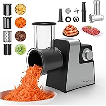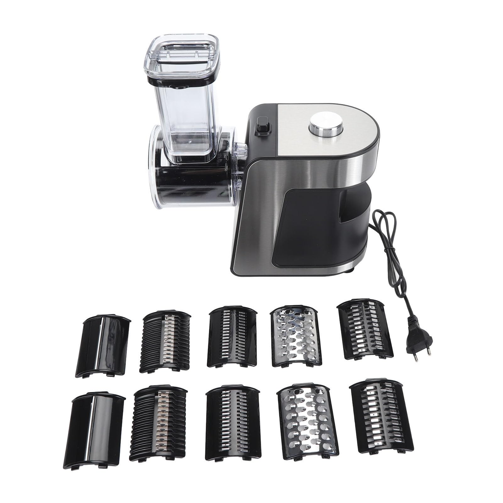 Kochen war noch nie so einfach! Dieser elektrische Gemüseschneider mit 1000W Power macht aus Gemüse im Handumdrehen perfekte Scheiben, Streifen oder Raspeln. Mit 10 verschiedenen Einsätzen - da ist für jeden Zweck was dabei. Ob Kartoffelscheiben für Gratin, Julienne-Streifen für Salat oder feine Raspel für Kohl - alles blitzschnell erledigt. Der Kupfermotor ist super stark und die Edelstahlklingen bleiben ewig scharf. Sicherheit geht vor: Mit rutschfesten Saugnäpfen und Food-Pusher, damit die Finger safe bleiben. Reinigen ist ein Kinderspiel - alle Teile sind abnehmbar und spülmaschinengeeignet. Aus Edelstahl und ABS - richtig hochwertig verarbeitet. Perfekt wenn du viel kochst, Gäste hast oder einfach keine Lust auf stundenlanges Schneiden. Spart so viel Zeit in der Küche! Maße: 15x12x20cm - passt in jede Küche. Einfach Gemüse rein, Deckel zu und Knopf drücken - mehr musst du nicht tun. Mach deine Küche zur Profi-Küche - ohne Profi-Preise!