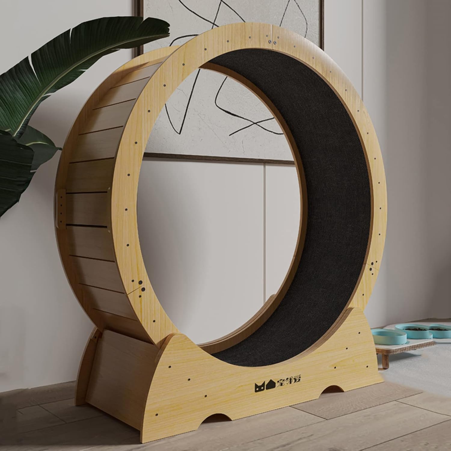 Wow, deine Katze wird dieses Laufrad lieben! Mit stolzen 100cm Durchmesser ist es sogar für große Kater und schwere Katzen bis 11kg perfekt geeignet. Aus hochdichter Faserplatte gefertigt, ist es super stabil und kratzfest - hält auch den wildesten Spielstunden stand. Das pfotensichere Design verhindert, dass sich dein Liebling verletzt, und der leise Laufmechanismus sorgt dafür, dass deine Ruhe nicht gestört wird. Mit den Maßen 100 x 36,5 x 106 cm bietet es reichlich Platz zum Rennen und Toben. Die Montage ist total einfach - alles Notwendige liegt bei. Und das Beste: Das Kratzpad lässt sich blitzschnell reinigen. Perfekt für aktive Katzen, die auch bei schlechtem Wetter ihren Bewegungsdrang ausleben wollen. Dein Stubentiger wird's dir danken!