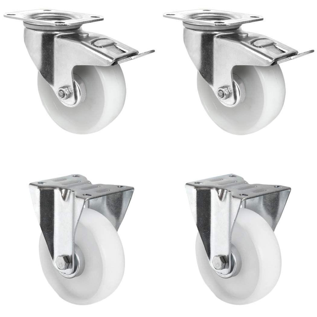 Willst du deine Möbel oder Geräte mobil machen? Dieser Rollensatz mit vier Lenkrollen macht's möglich! Jede Rolle hat 100 mm Durchmesser und ist aus robustem Polypropylen - spurlos, geruchlos und hygienisch. Der Feststeller arretiert sowohl die Schwenk- als auch die Radbewegung, sodass alles sicher stehen bleibt. Mit Anschraubplatte aus verzinktem Stahlblech einfach zu montieren. Die Rollen sind chemikalienbeständig und für Temperaturen von -20°C bis +60°C geeignet. Perfekt für Werkstattwagen, Regale, Blumenkübel oder Möbel. Der geringe Rollwiderstand macht das Bewegen auch schwerer Lasten zum Kinderspiel. Ein preiswerter und praktischer Helfer für Haushalt, Werkstatt oder Lager!