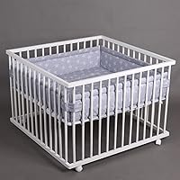 Dieses Laufgitter von Sämann ist mehr als nur ein Laufstall - es ist ein richtiges Hausbett für dein Baby! Mit den Maßen 100x100 cm (außen 101x101 cm) bietet es viel Platz zum Spielen und Schlafen. Das Besondere: Der Boden ist stufenlos höhenverstellbar, was super für deinen Rücken ist - kein lästiges Bücken mehr beim Herausheben deines Kleinen. Jetzt neu mit 4 feststellbaren, gummierten Rollen statt Holzfüßen, sodass du es leicht verschieben kannst. Dazu kommen 3 Schlupfsprossen für mehr Flexibilität. Das Laufgitter ist aus nachhaltigem Buchenholz gefertigt, fein geschliffen und alle Kanten sind schön abgerundet. Die Matratze ist nach OEKO-TEX STANDARD 100 geprüft, damit dein Baby sicher schläft. Alle Lacke und Folien sind TÜV-geprüft und frei von Schadstoffen. Und das ist noch nicht alles: Es ist sogar das weltweit erste vegan lizenzierte Laufgitter! Mit ner Höhe von 74 cm ist es auch für größere Babies noch geeignet. Der gepolsterte Boden hat eine abwaschbare Folie - praktisch bei kleinen Missgeschicken. Ein sicheres, langlebiges und schön designed Laufgitter, made in Germany. Perfekt für Eltern, die Wert auf Qualität und Sicherheit legen.